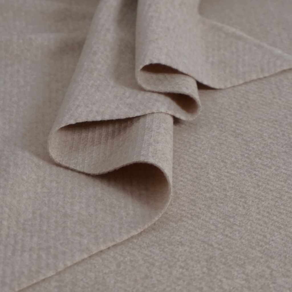 Der gewebte Stoff ist leicht angeraut und hat eine wollige Optik. Ein schöner Stoff für mitteldicke Wintermäntel und elegante Übergangsjacken.