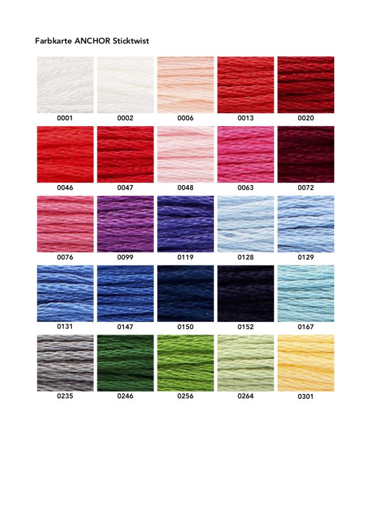 Das Stickgarn von ANCHOR auch Twist genannt, ist der Qualitätsartikel in Sachen Sticken. Das 6-fädige Garn kann in voller Stärke oder geteilt für alle klassischen Stickprojekte eingesetzt werden. Es ist aus extra langen ägyptischen Baumwollfasern erzeugt und in jedem Faden 2-fach verzwirnt. Viele verwenden es auch für das Knüpfen von Armbändchen.