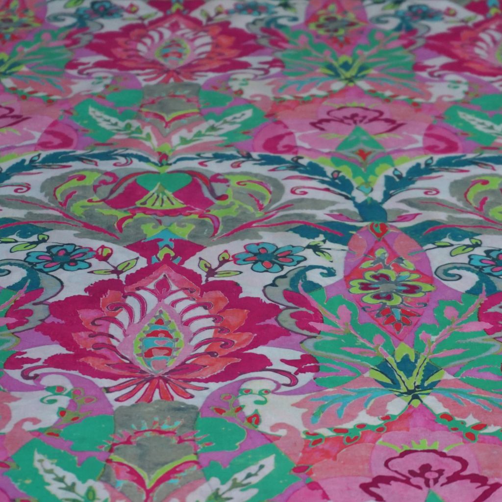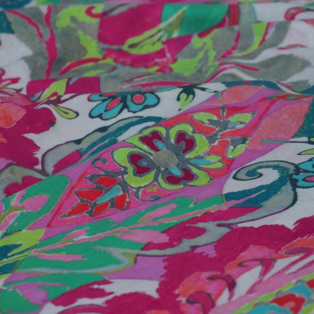 Leichte Baumwolle flächiger Blütendruck pink grün
