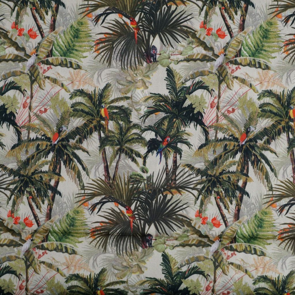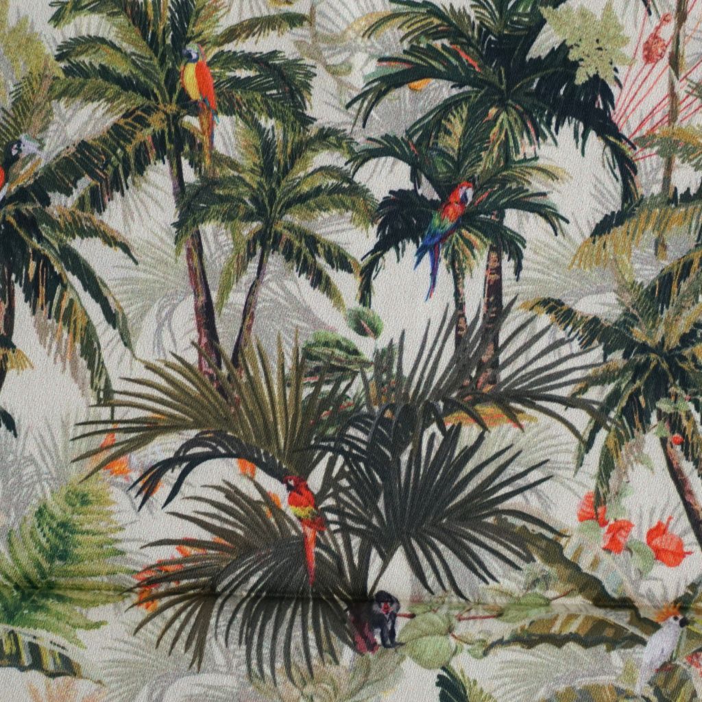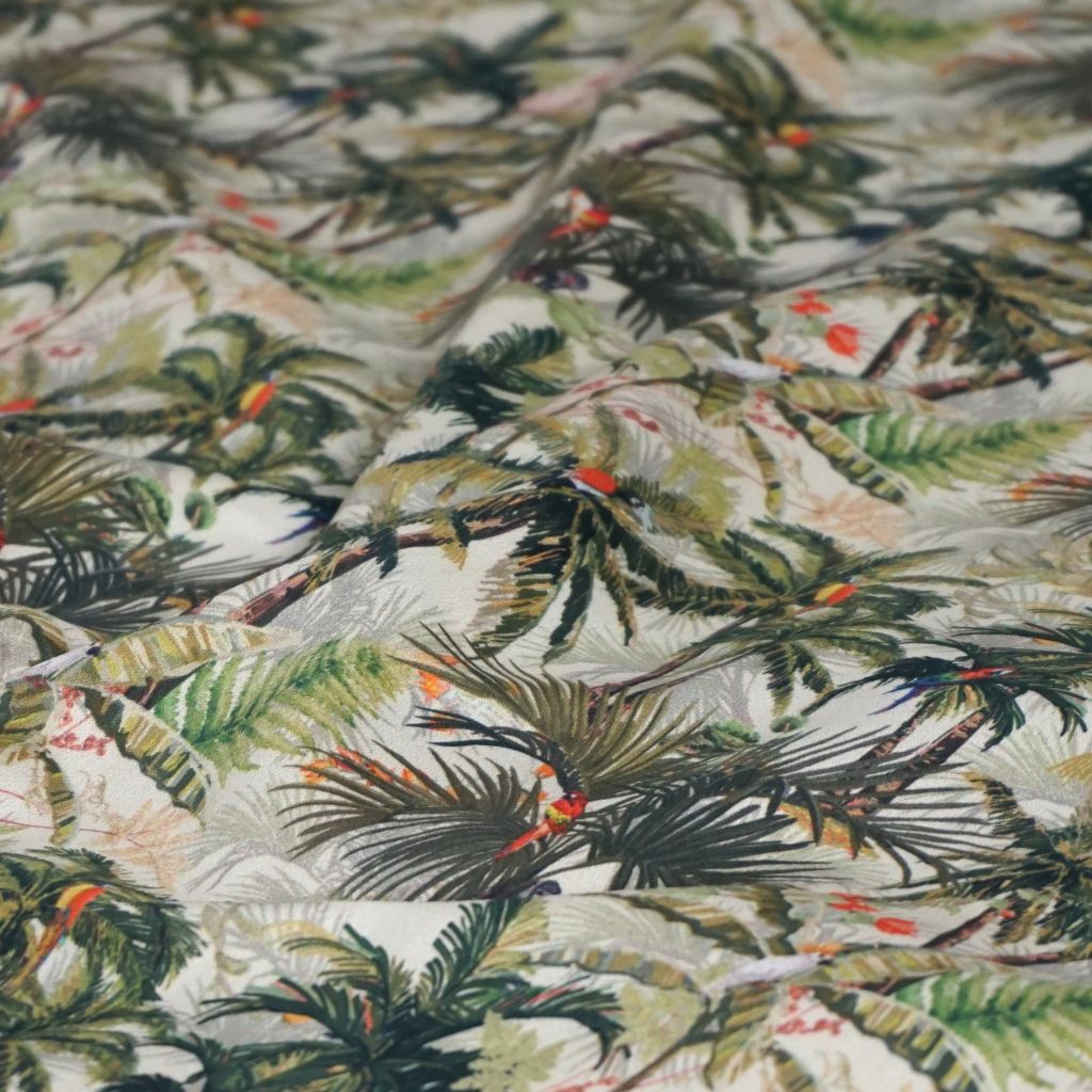Leichte Baumwolle Hemdenstoff Palmen Papageien grün khaki