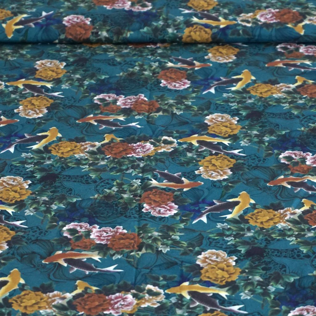 Dieses wunderschöne Motiv ist auf Voile gedruckt. Das heißt Schleier und wird [vo̯aːl] ausgesprochen. Entsprechend ist das Gewebe leicht durchscheinend, fein gewebt und fällt besonders weich. Damit ist der Stoff die ideal Naturfaser-Option für leichte Sommerblusen, Maxikleider, Tücher und Co. Die für Voile typischen überdrehten Baumwollfäden sorgen für ideale Luftzirkulation. Der Musterdruck ist außergewöhnlich elegant. Praktisch ist, dass du diesen Bio-Baumwollstoff nicht einmal vorwaschen musst. Das Gewebe ist sanforisiert, sodass es nicht mehr einläuft.