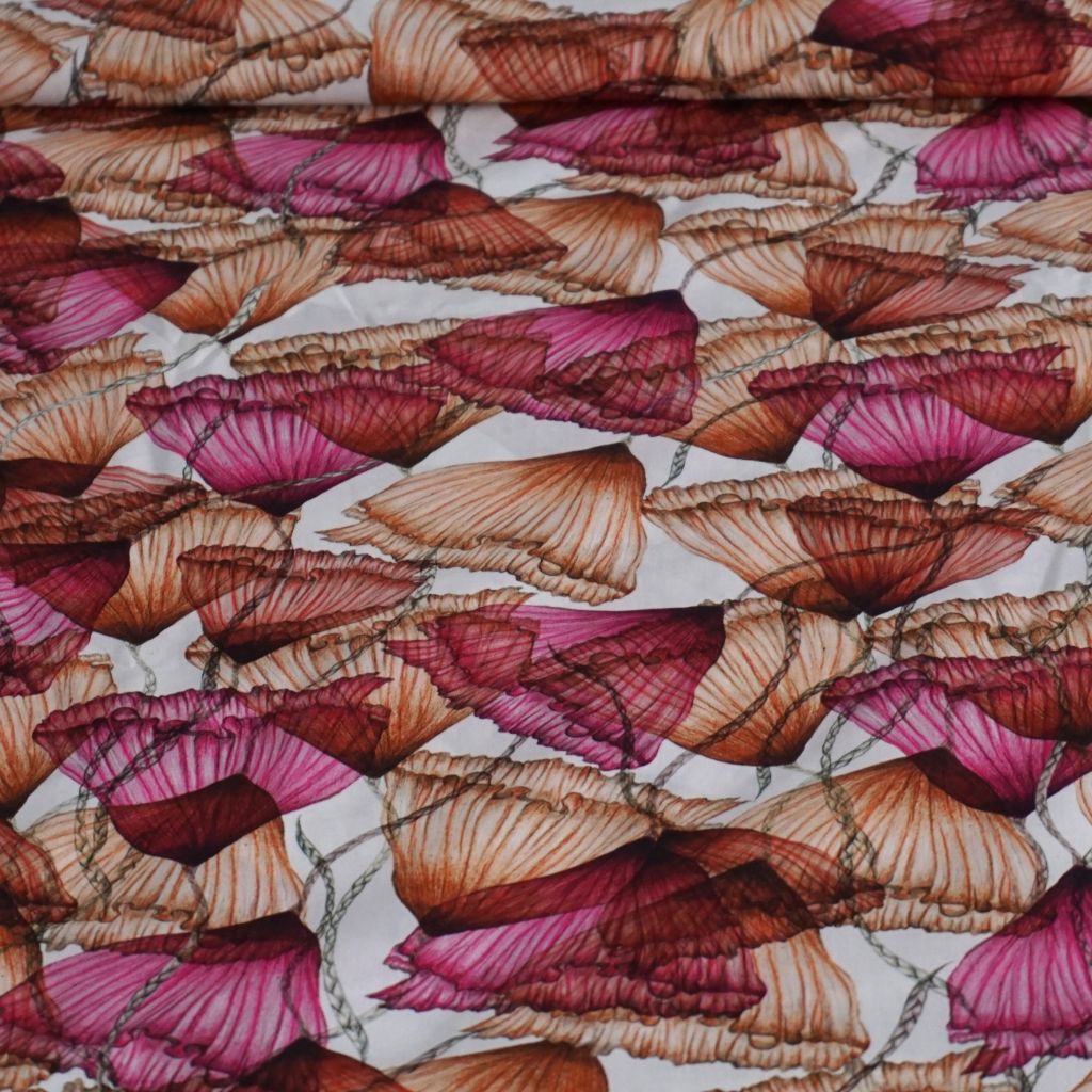 Dieses wunderschöne Motiv ist auf Voile gedruckt. Das heißt Schleier und wird [vo̯aːl] ausgesprochen. Entsprechend ist das Gewebe leicht durchscheinend, fein gewebt und fällt besonders weich. Damit ist der Stoff die ideal Naturfaser-Option für leichte Sommerblusen, Maxikleider, Tücher und Co. Die für Voile typischen überdrehten Baumwollfäden sorgen für ideale Luftzirkulation. Der Musterdruck ist außergewöhnlich elegant. Praktisch ist, dass du diesen Bio-Baumwollstoff nicht einmal vorwaschen musst. Das Gewebe ist sanforisiert, sodass es nicht mehr einläuft.