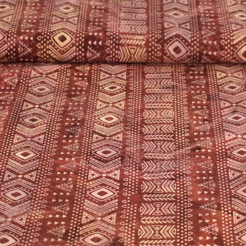 Leichter Baumwollstoff Batik Ethnomuster rostrot