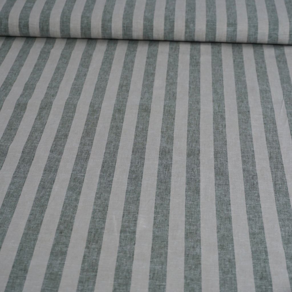 Leinen Baumwolle Mix Blockstreifen grün natur