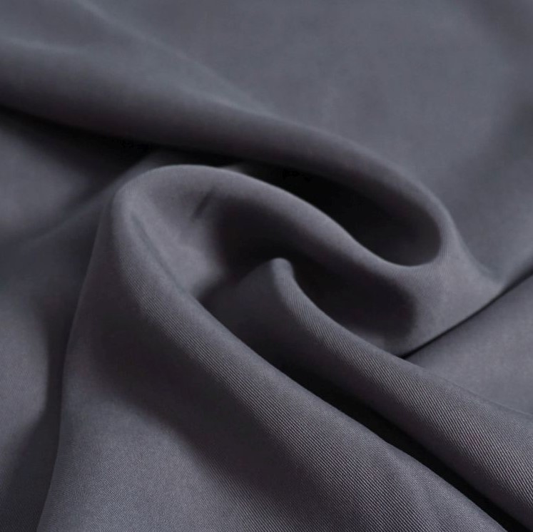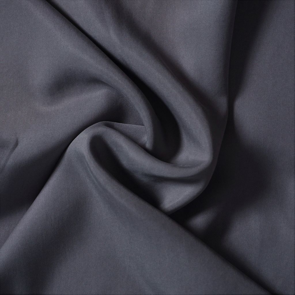 Eigenschaft: etwas schwerer, nahezu bllickdicht, fließend, kühler weicher Griff, feine diagonale Köperwebstruktur, dezenter Schimmer, gefärbt