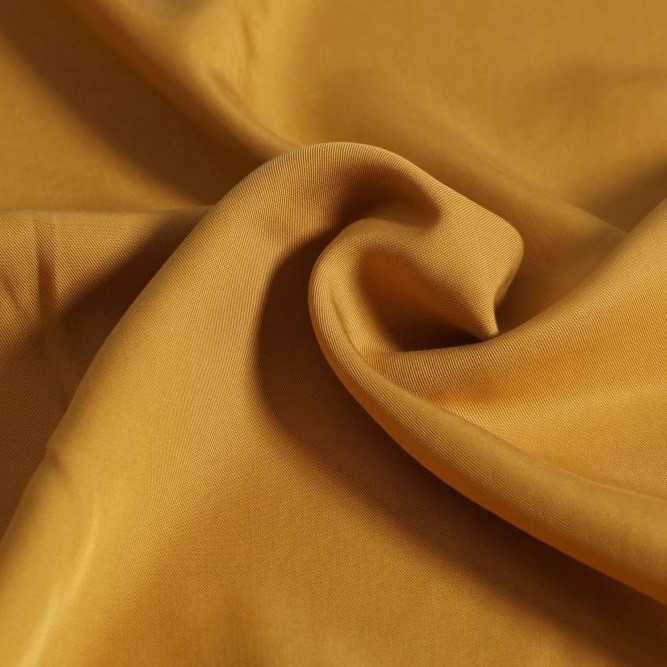 Eigenschaft: etwas schwerer, nahezu bllickdicht, fließend, kühler weicher Griff, feine diagonale Köperwebstruktur, dezenter Schimmer, gefärbt