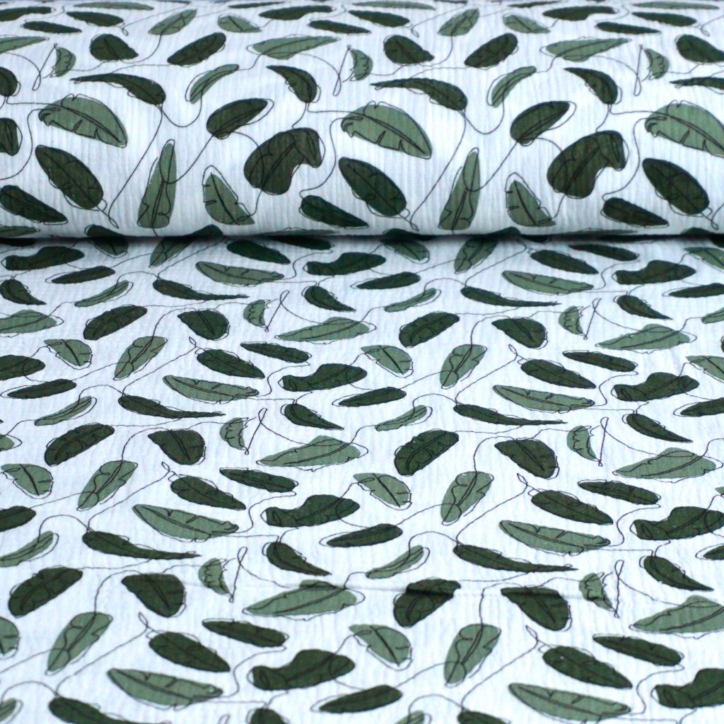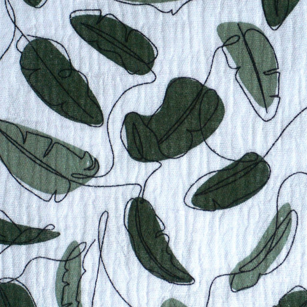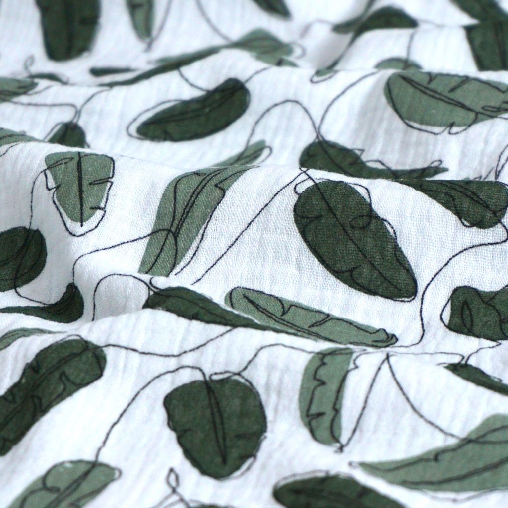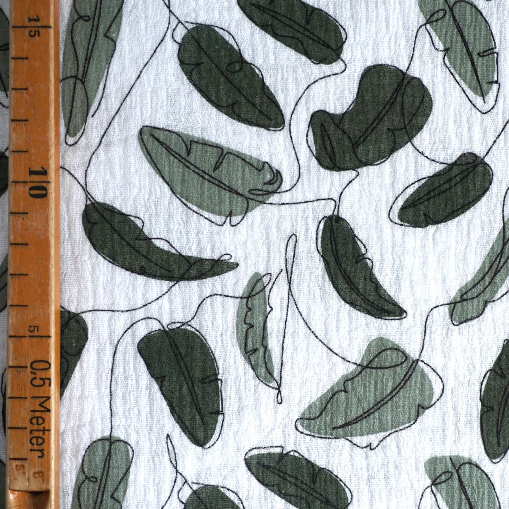 Musselin Double Gauze Blätter grün ecru
