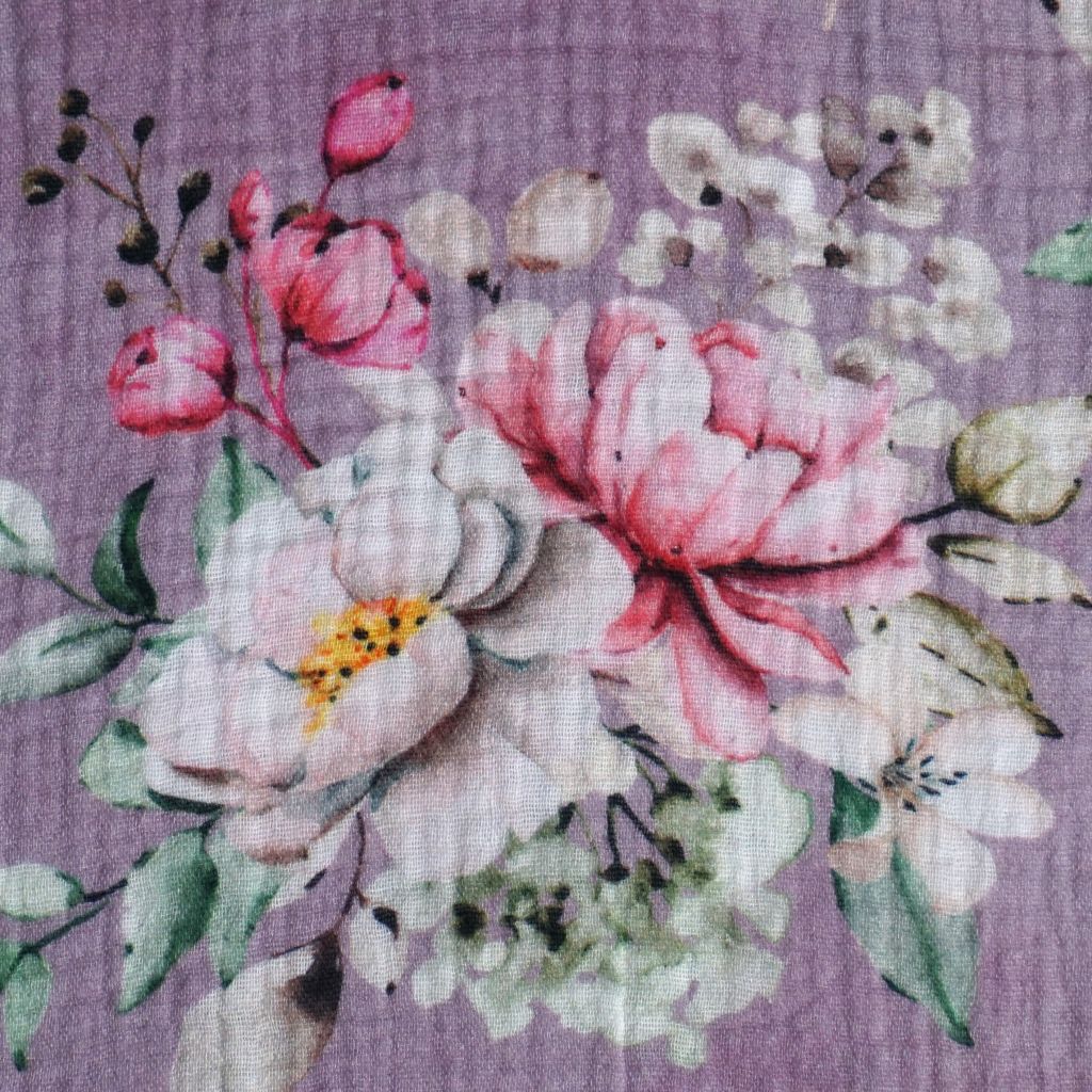 Musselin Double Gauze Blumenbouquet Blüten flieder