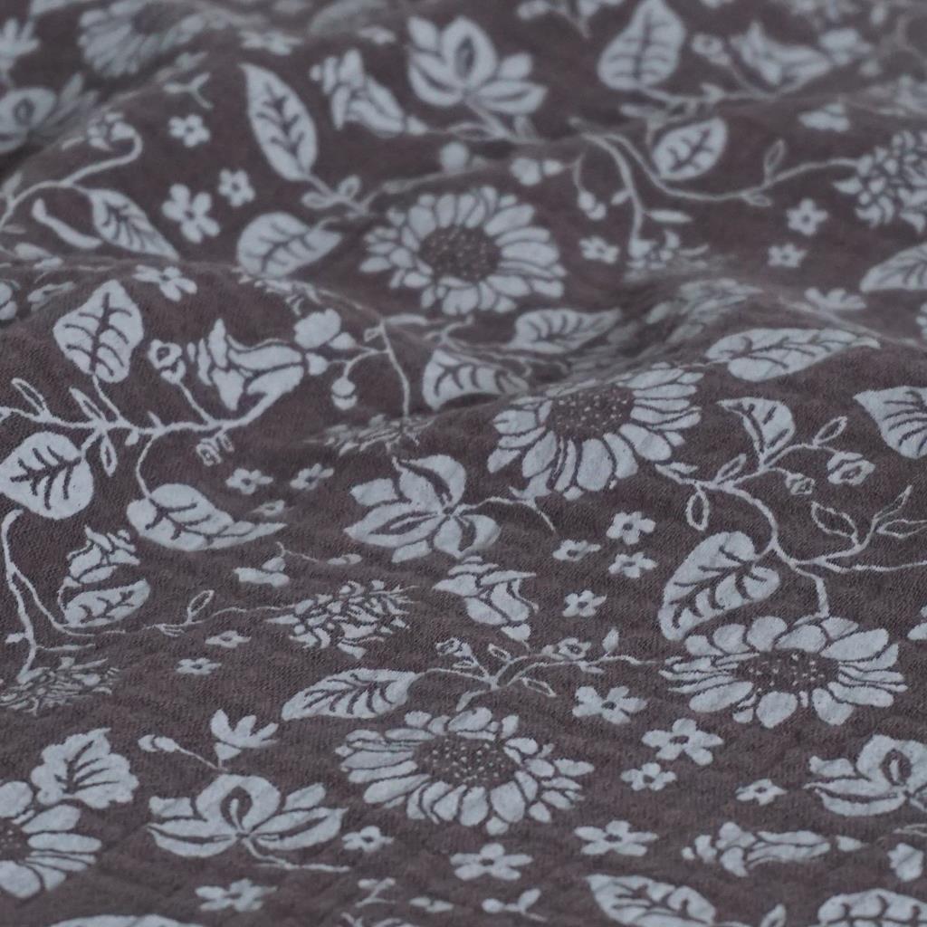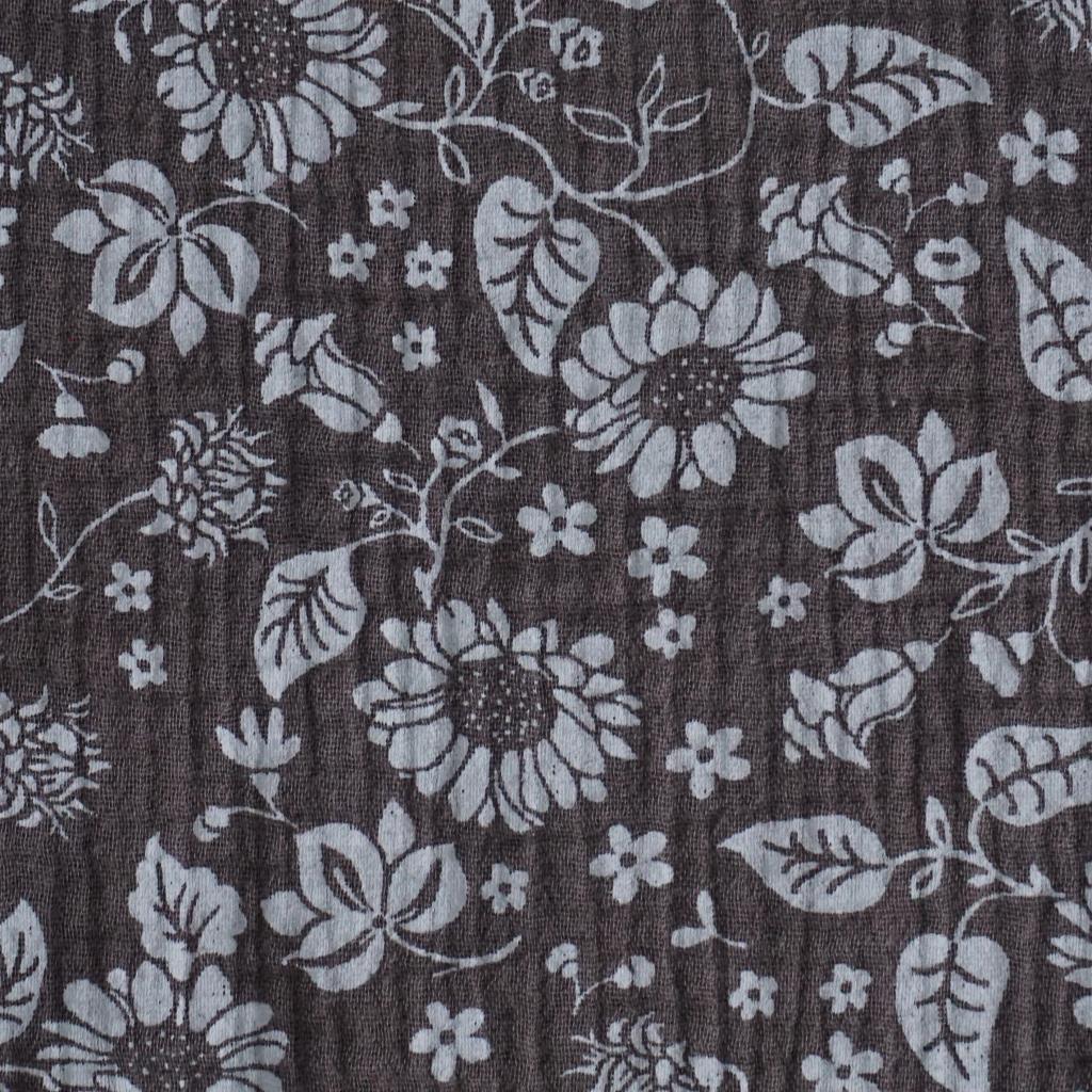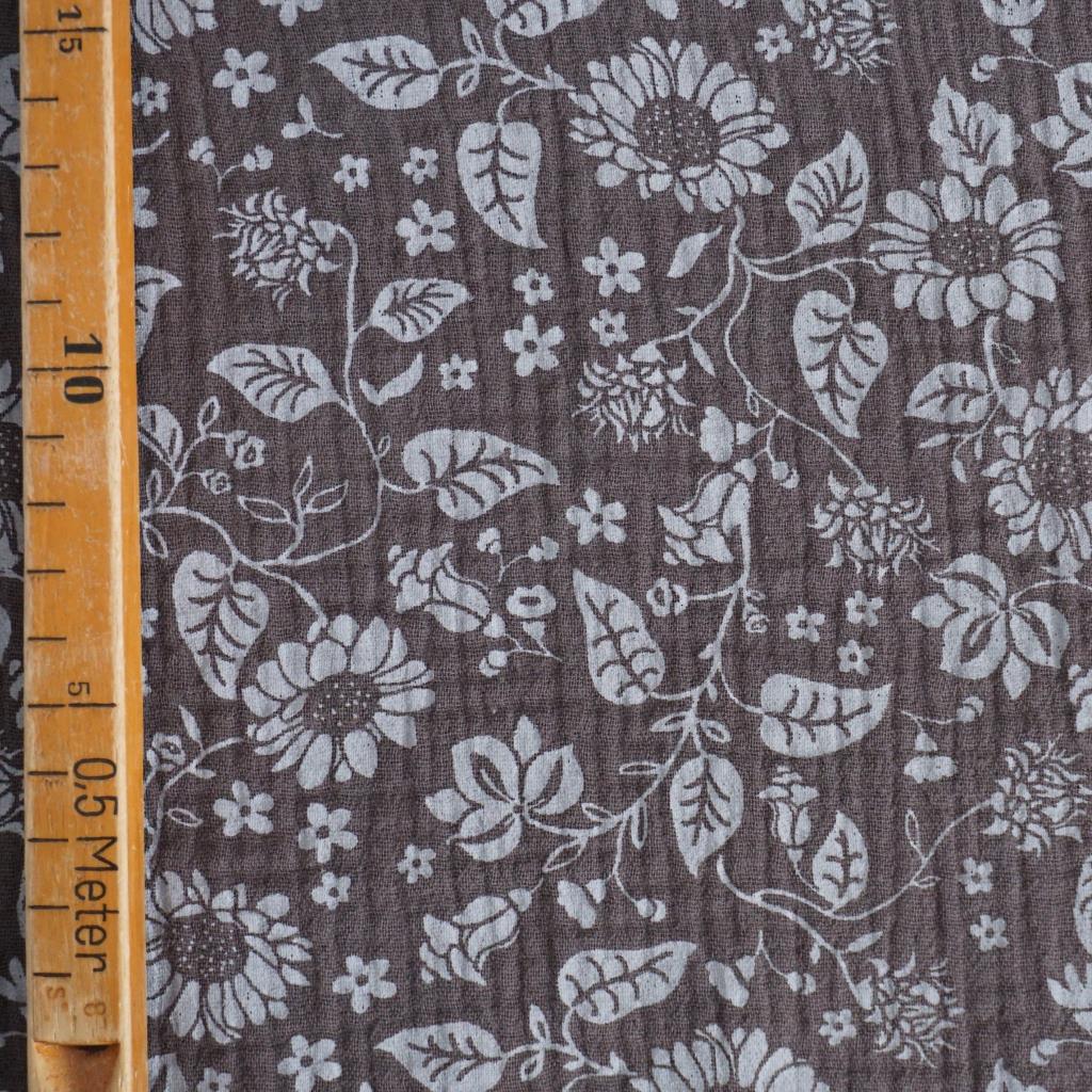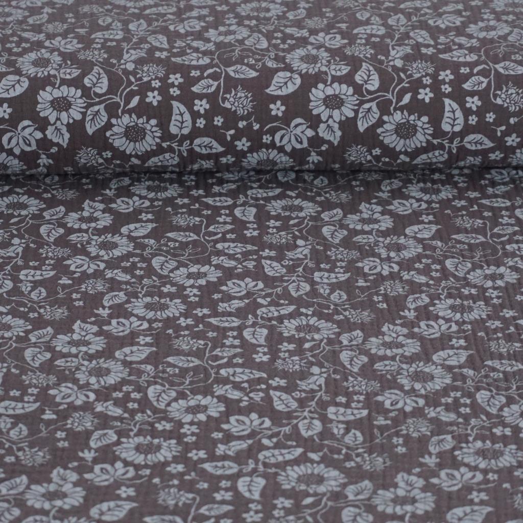 Musselin Double Gauze heller Blütendruck auf braungrau