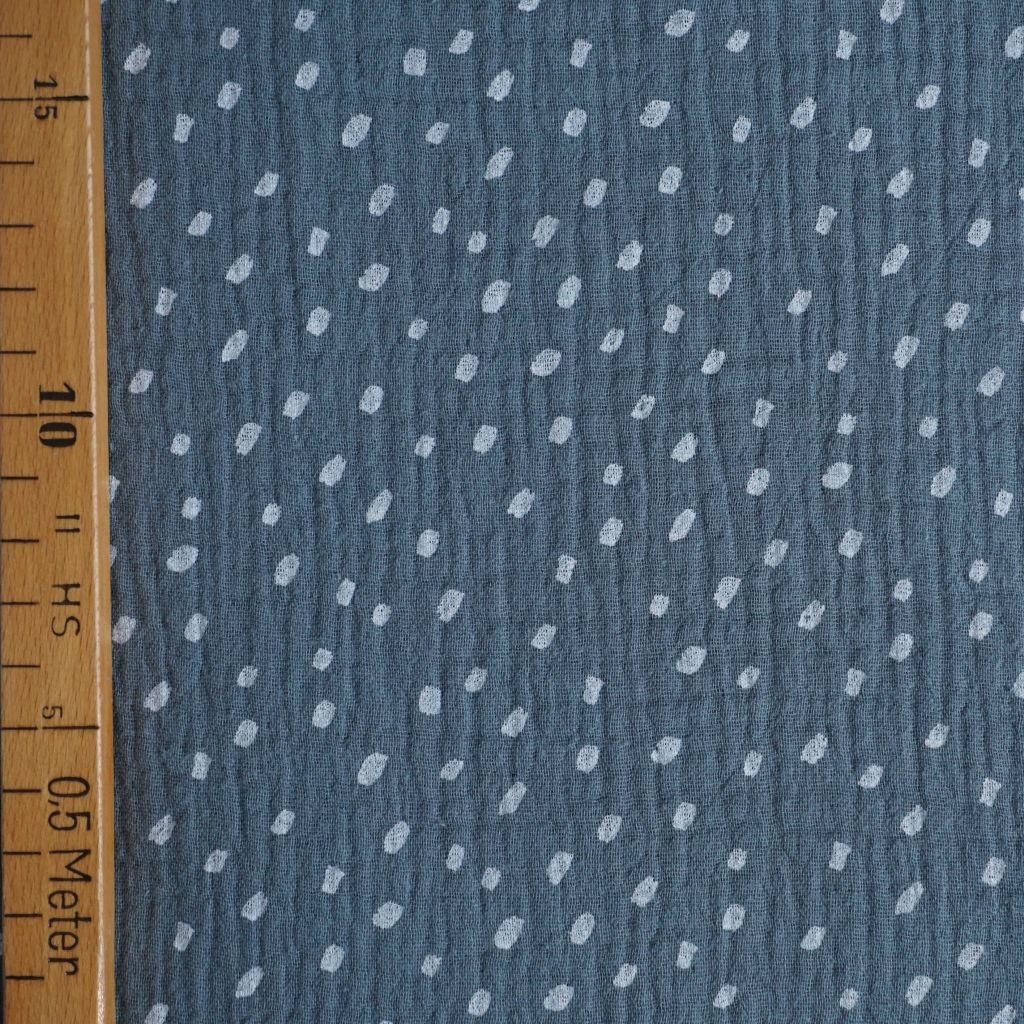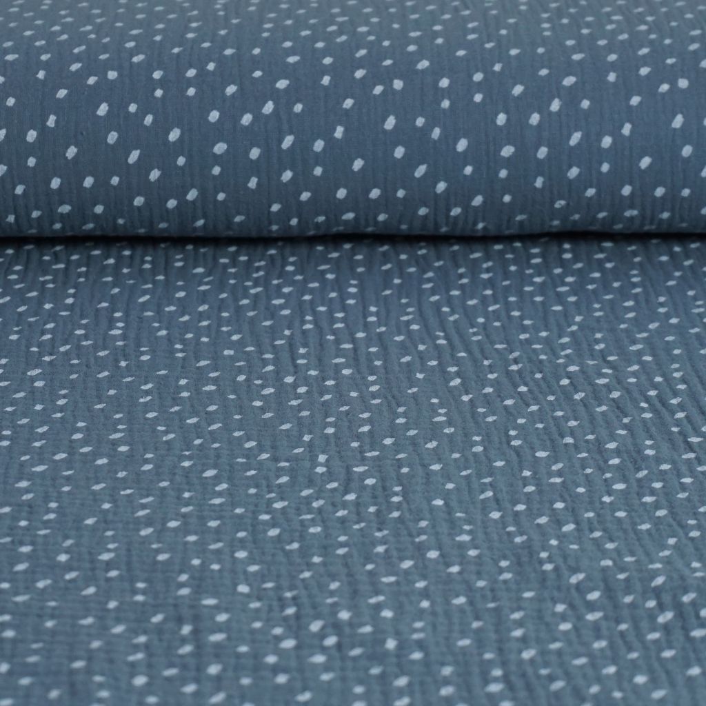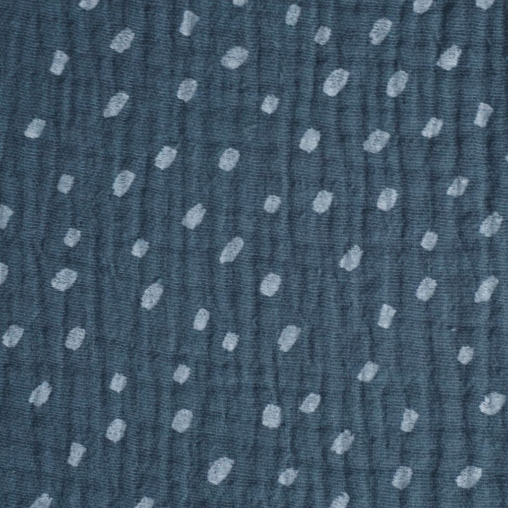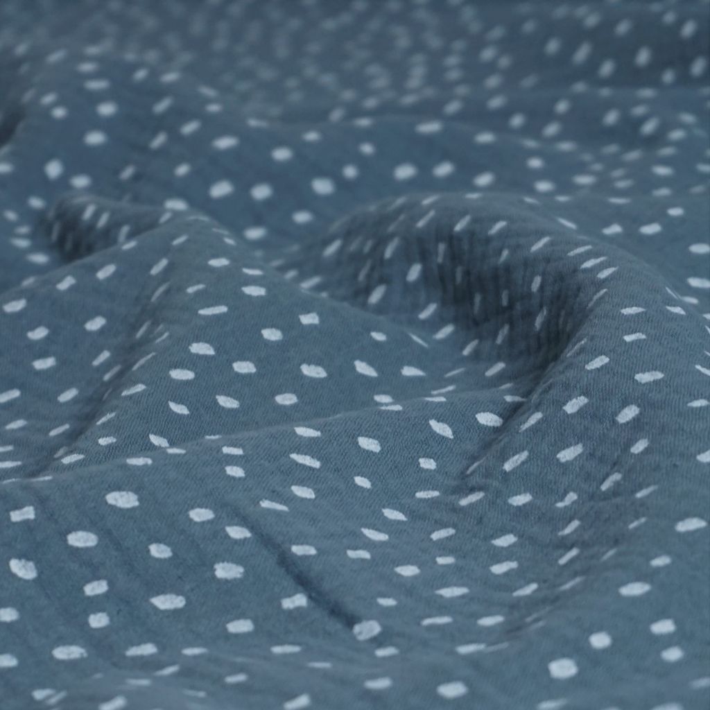 Musselin Double Gauze weiße Tupfen auf stahlblau