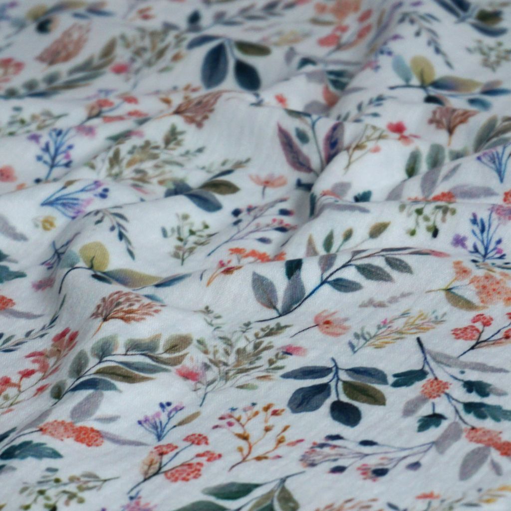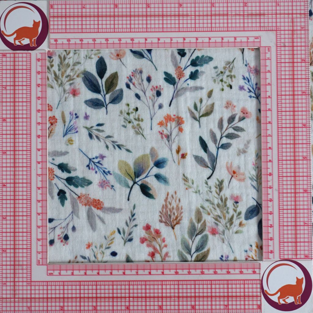 Musselin Double Gauze Zweige Grüntöne orange ecru
