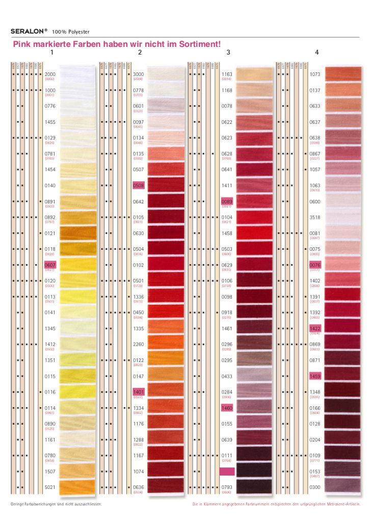 Sieh in die Farbkarte um dich mit den Farbnummern zu orientieren!