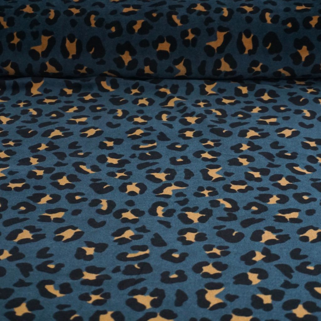 Nickistoff bedruckt Leo Animalprint petrol