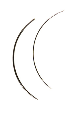 Polsternadeln sind gebogenen Nadeln. So kommst du auch an schwer zugängliche Stellen bei der Reparatur deines Sofas oder Autositzes. Schließlich kannst du die Nadel nicht durchstechen, wenn der Stoff bereits straff auf das Polster gespannt ist.