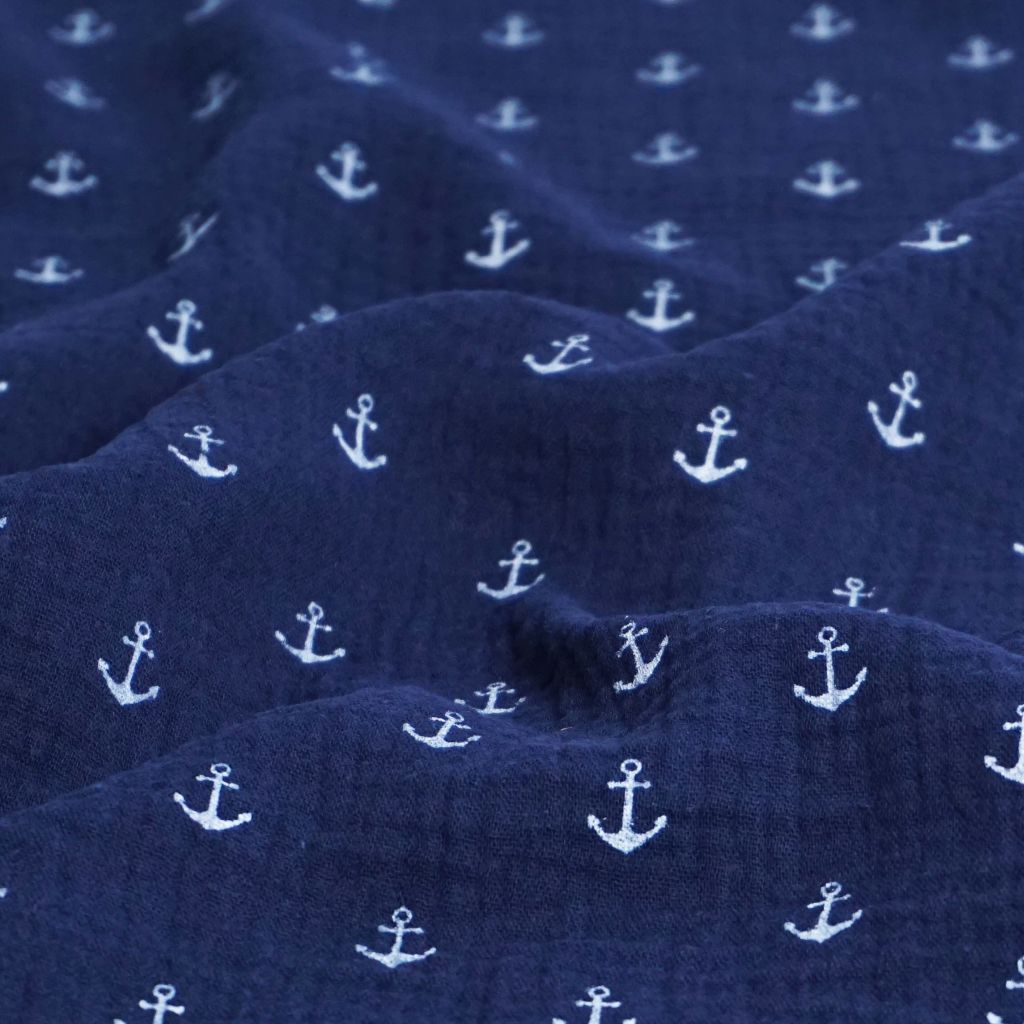 REST Musselin Double Gauze Anker dunkelblau