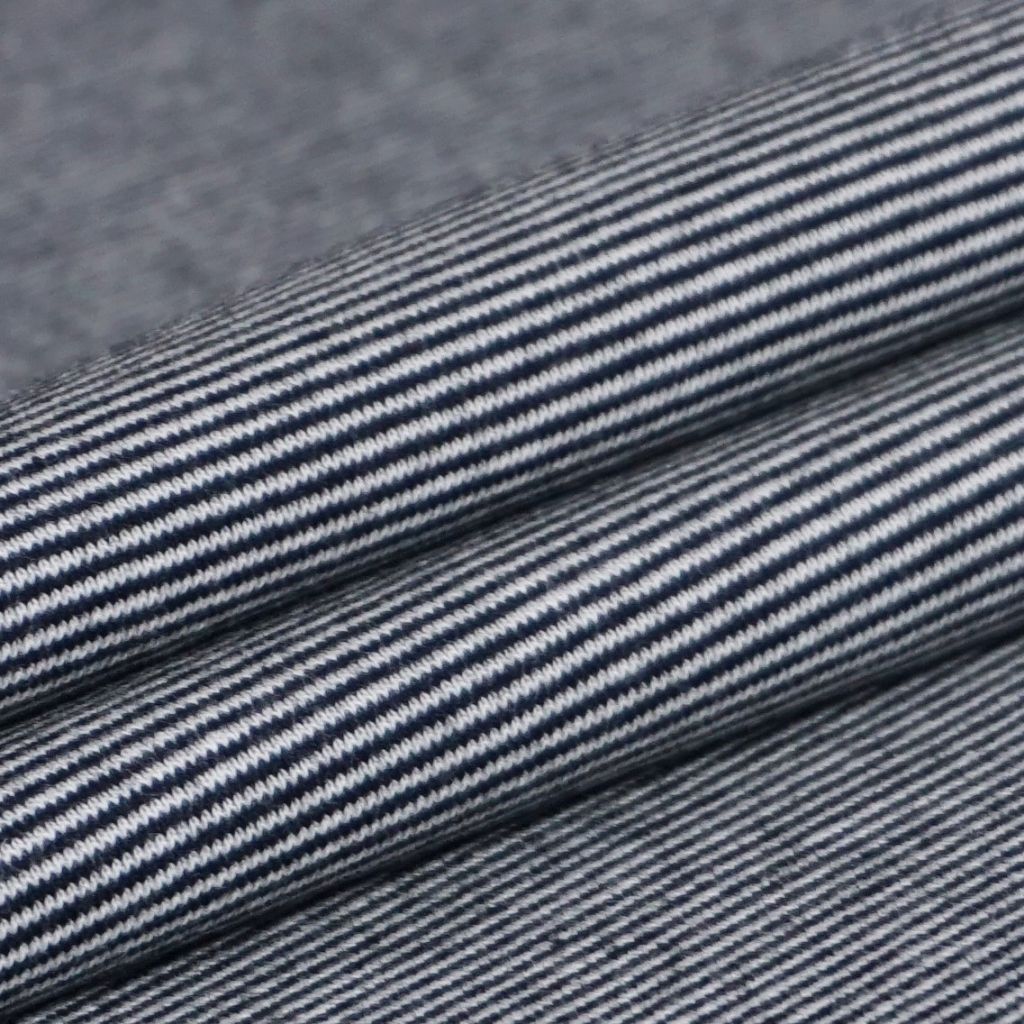 Unser feingeringeltes Bündchen sieht besonders süß aus. Die schmalen Streifen passen sich oft sehr gut an andere Farben an und beleben auch deine schlichtesten Kleidungsstücke. Die Oberfläche ist glatt und der Stoff klassisch im Schlauch gestrickt.