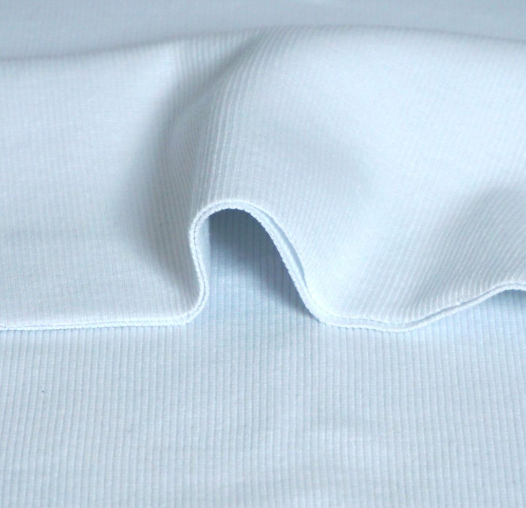 Die Bündchenware ist gerippt gestrickt mit ca. 2-3mm Rippenbreite. Der Look des Strickbündchens ist etwas gröber, der Griff jedoch schön weich, elastisch und schmiegsam. Wie üblich liegt der Bündchenstoff im Schlauch.
