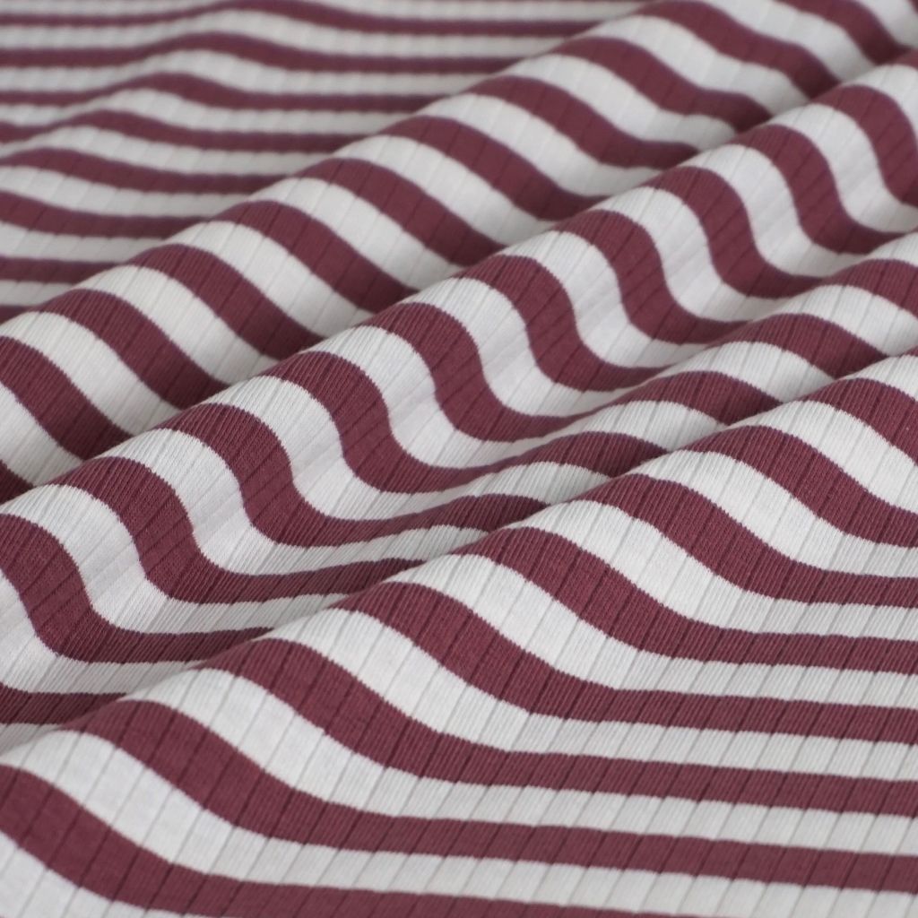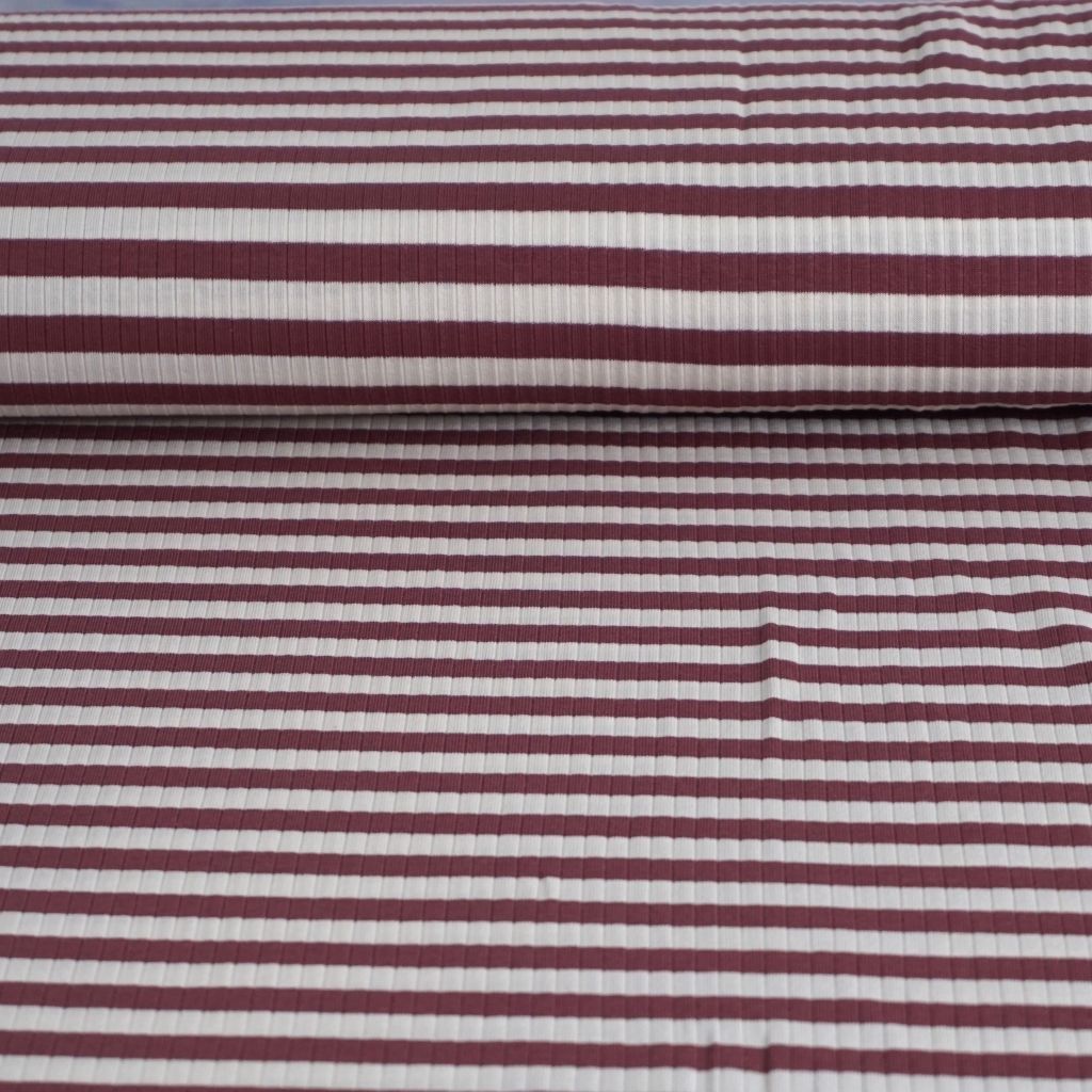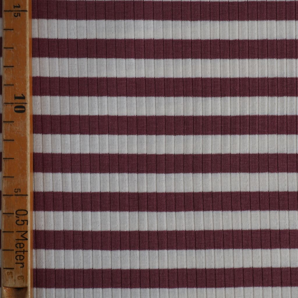 Eigenschaft: breite und schmale Rippen im Wechsel, quer zur Rippe farbig gestreift, blickdicht, feine Maschen, elastisch, weicher Griff mit etws Stand, Retrolook