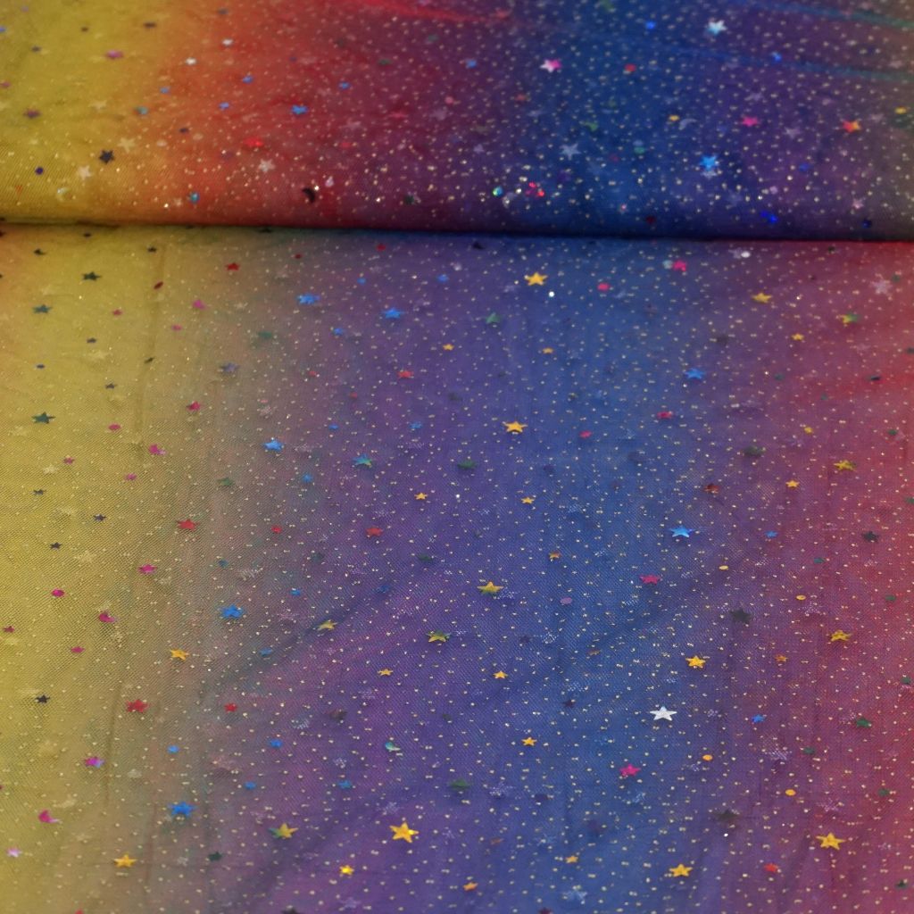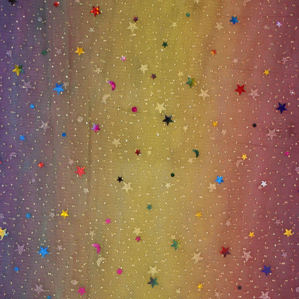 Soft-Tüll Regenbogen Verlauf Sterne Mond Glitter