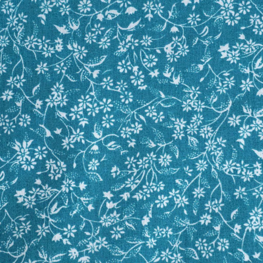 Baumwollstoff Motivdruck Blümchen weiß auf petrol