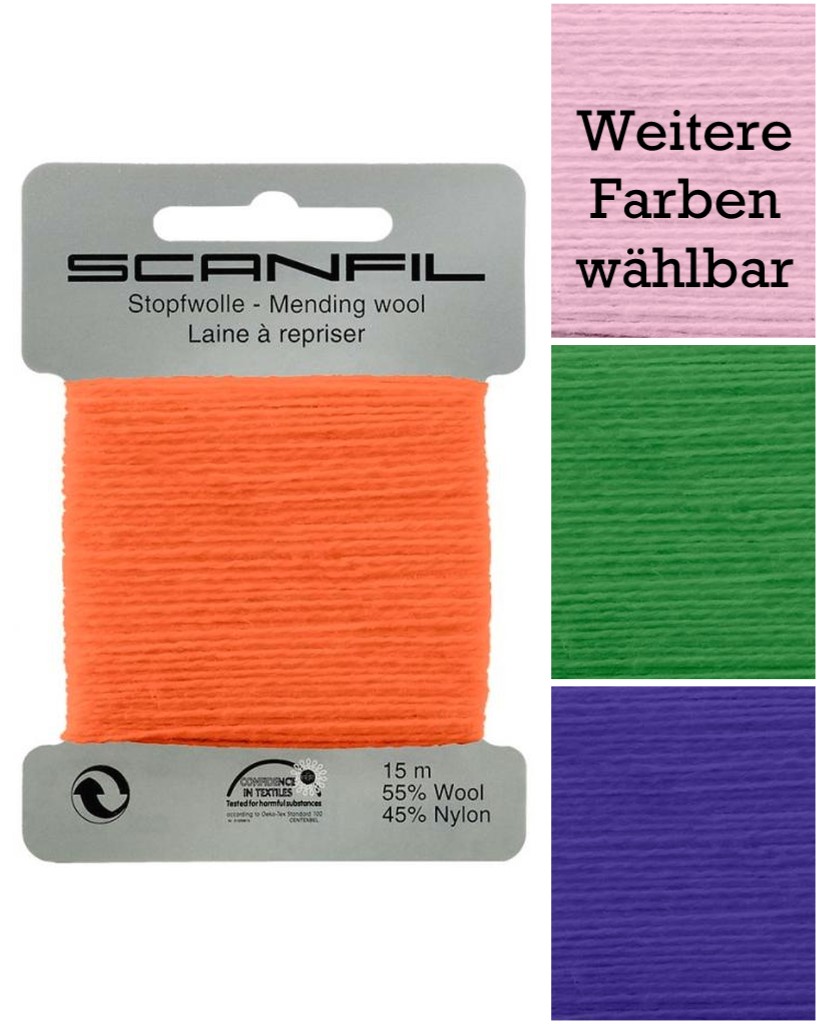 Das klassische Stopfgarn ist ein Wolle-Kunstfaser-Mix. Das ist fast immer so, weil es durch den Kunstfaser-Anteil einfach stabiler ist. Mit dem Stopfgarn kannst du deine Socken und andere Strickwaren per Hand stopfen. Wer es von früher noch als Knäuel kennt, muss sich nun umgewöhnen. Die Karte ist in der Aufbewahrung einfach praktischer. Es ist aber dasselbe Garn aufgewickelt. Da das Garn bauschig ist um Flächen zu füllen, aber nicht sehr reißfest, verwende es lieber nicht für andere Zwecke.