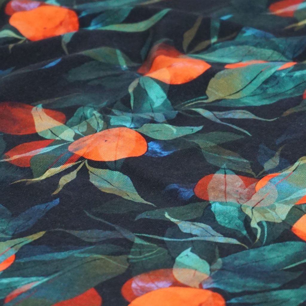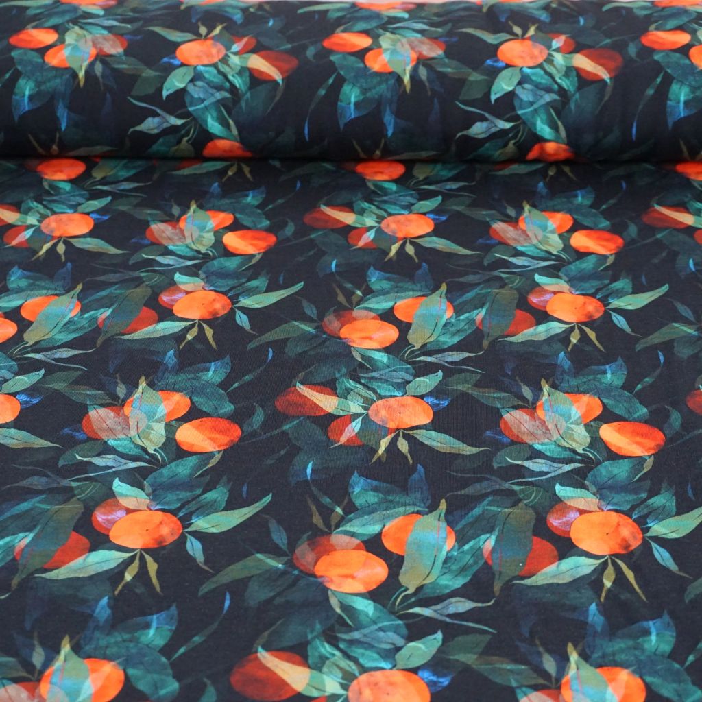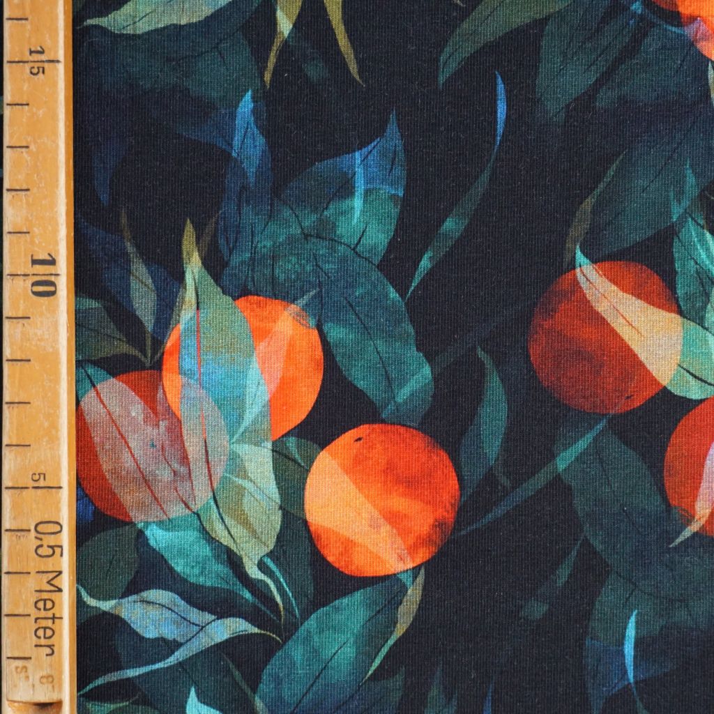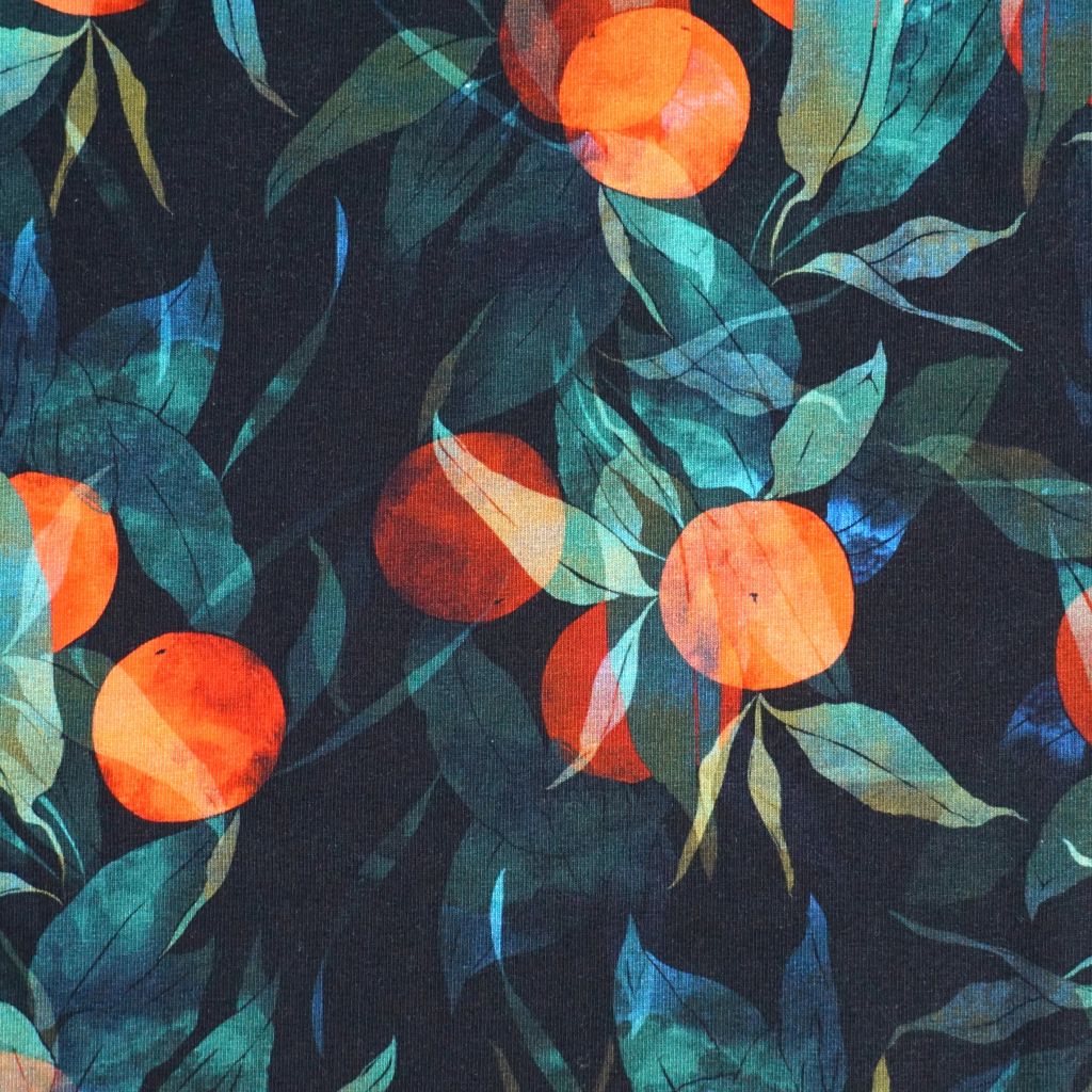 Stretch-Sweat leicht Orangenzweige Grüntöne