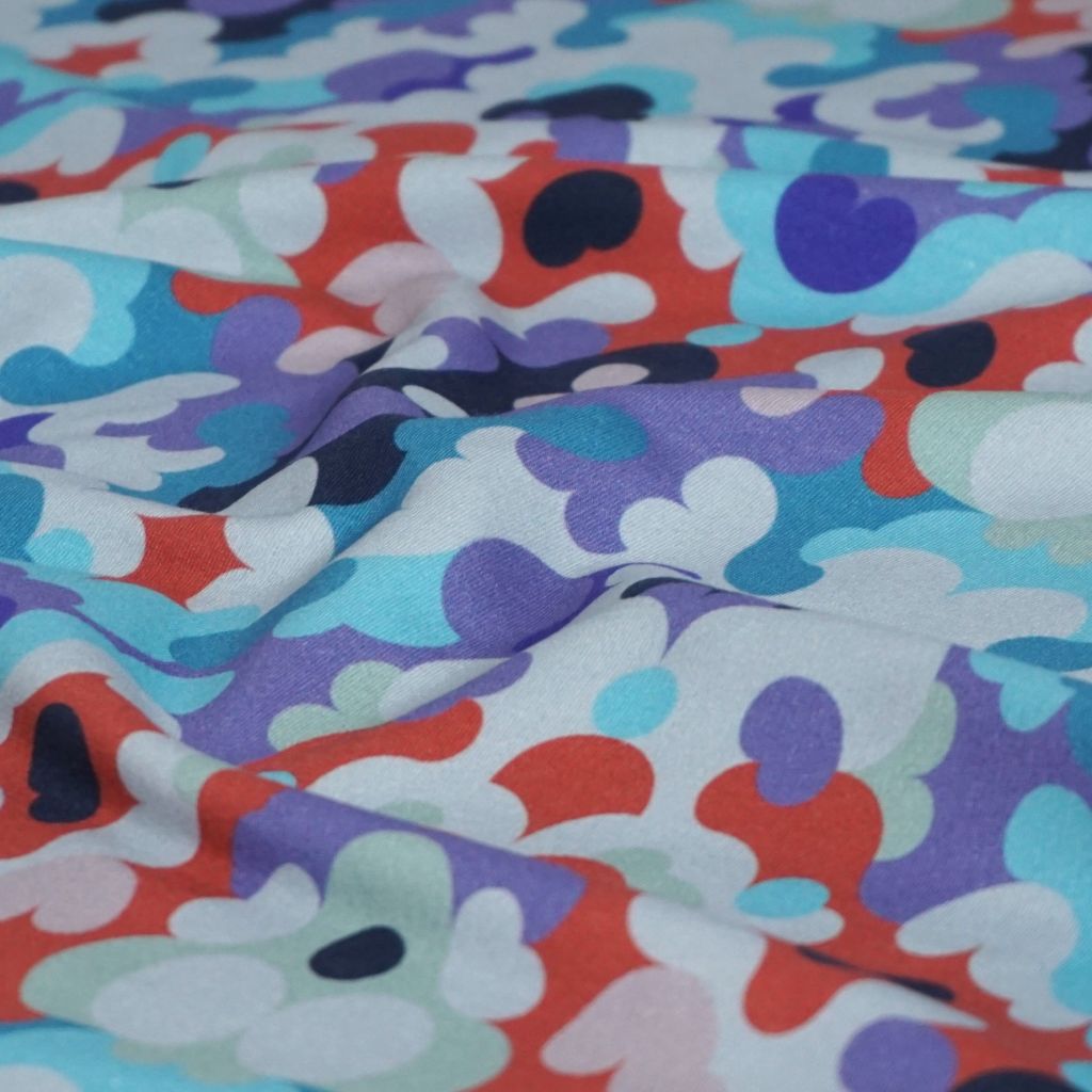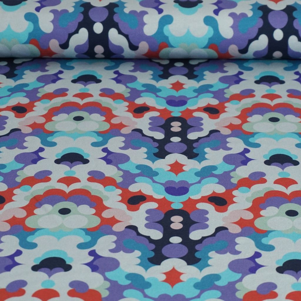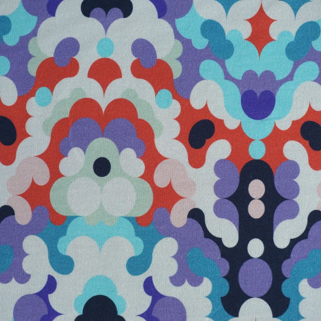 Stretch-Sweat leicht Retromuster 60er 70er lila türkis