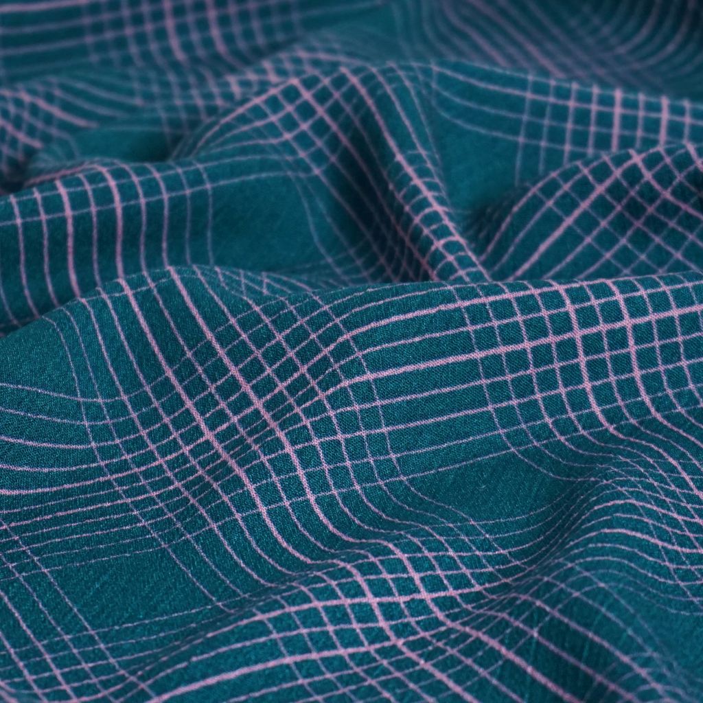Viskose Borkencrepe rosa Karo auf dunkelgrün