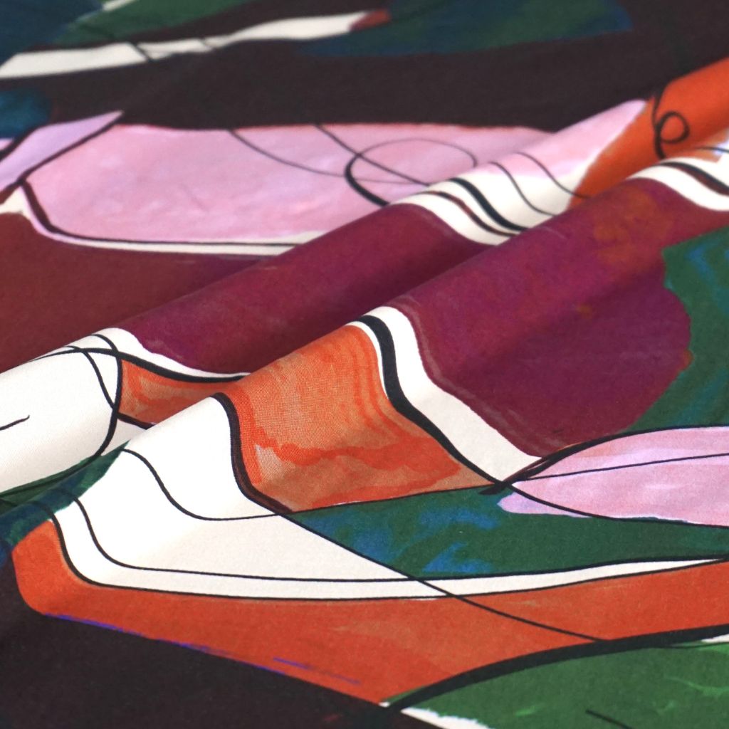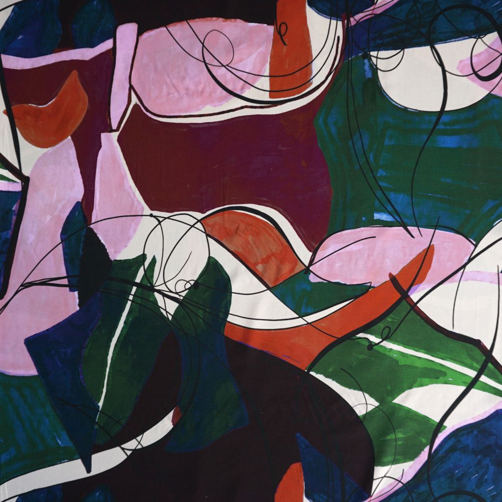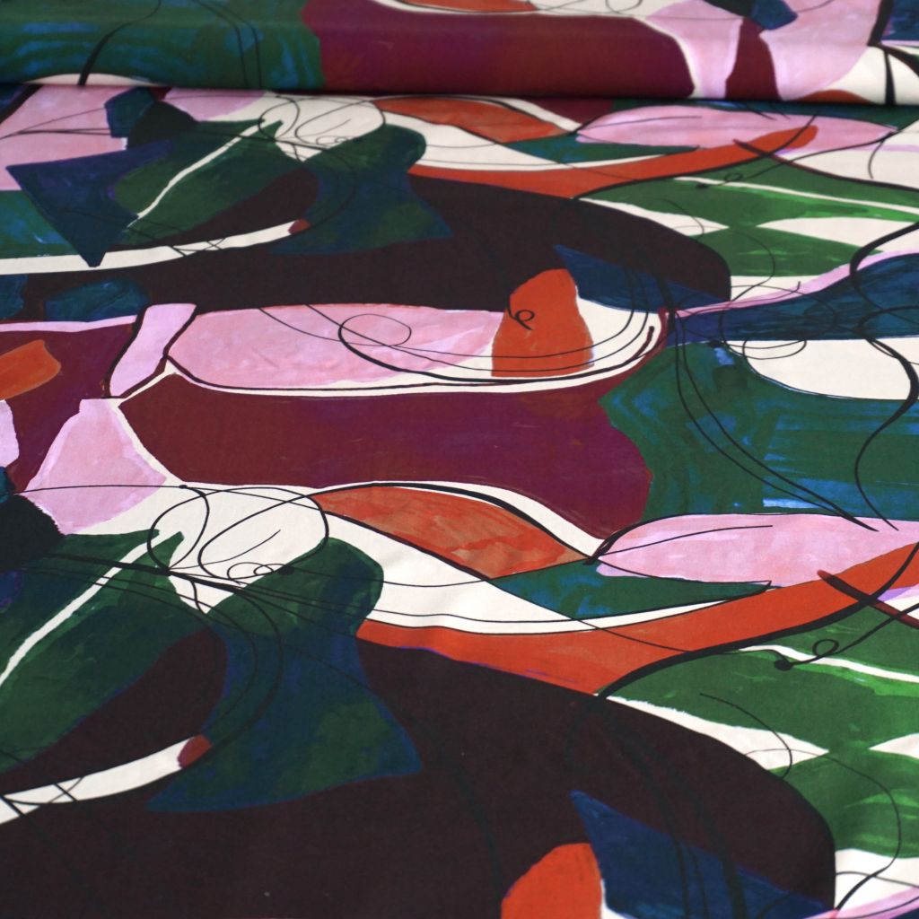 Viskose Druck abstrakte Flächen rosa rot grün petrol