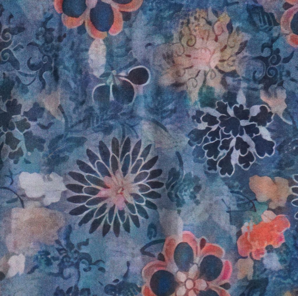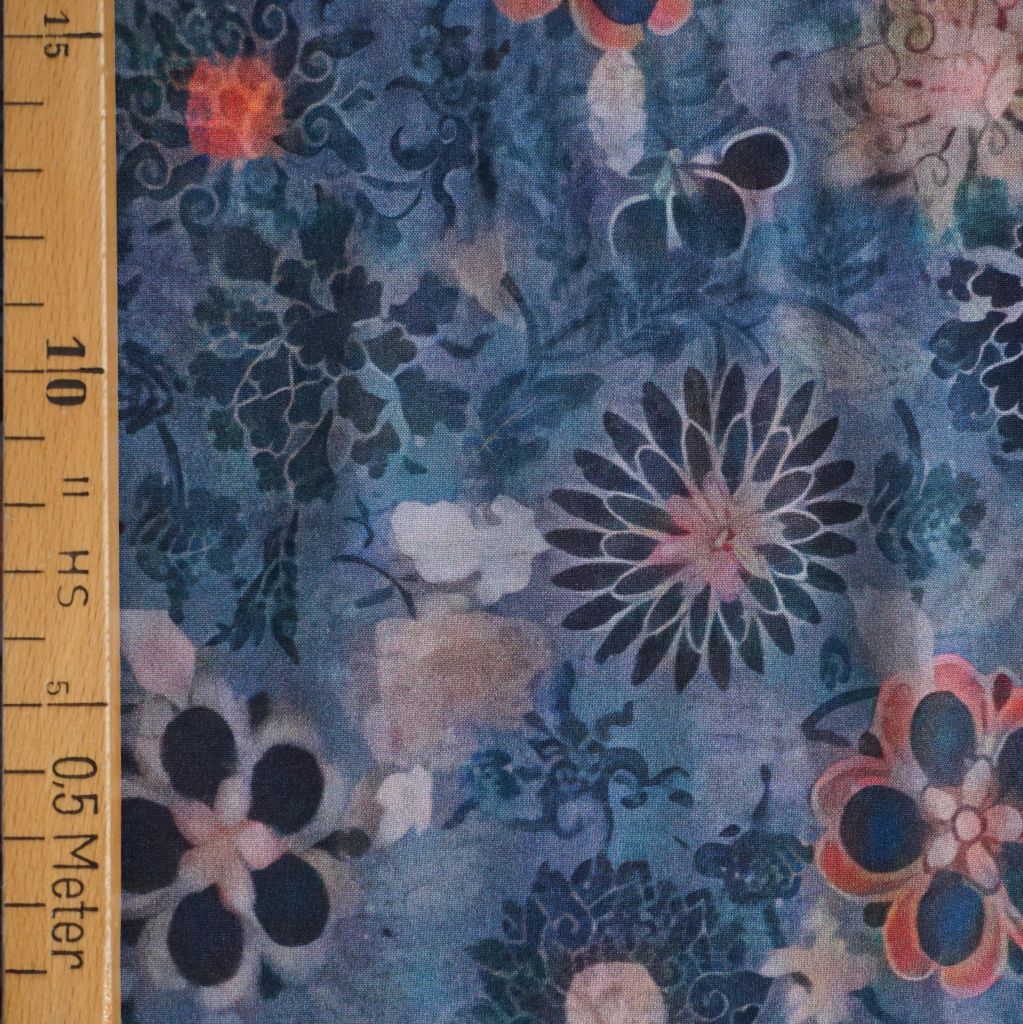 Viskose Druck Aquarellblüten auf rauchblau