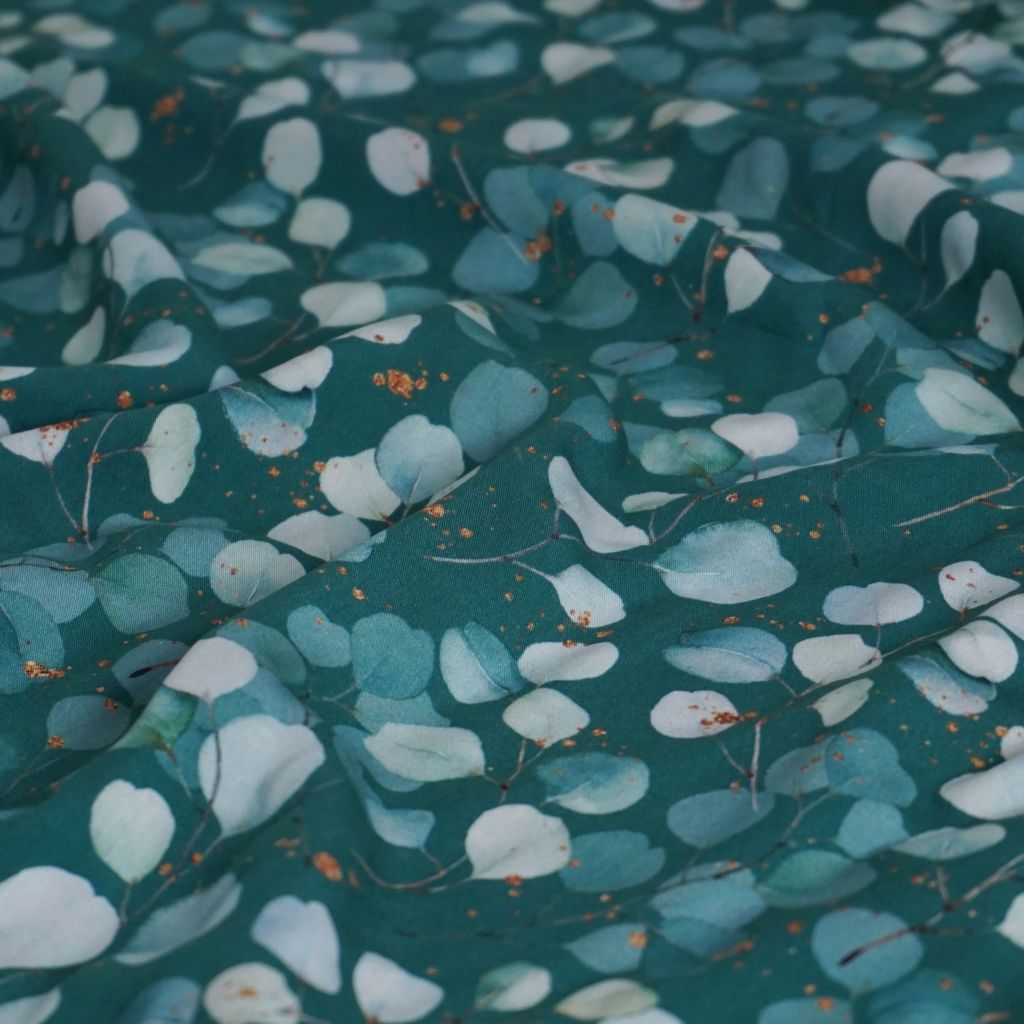 Eigenschaft: leicht, nahezu blickdicht, fein, weicher Griff, glatte kühle Oberfläche, bedruckt