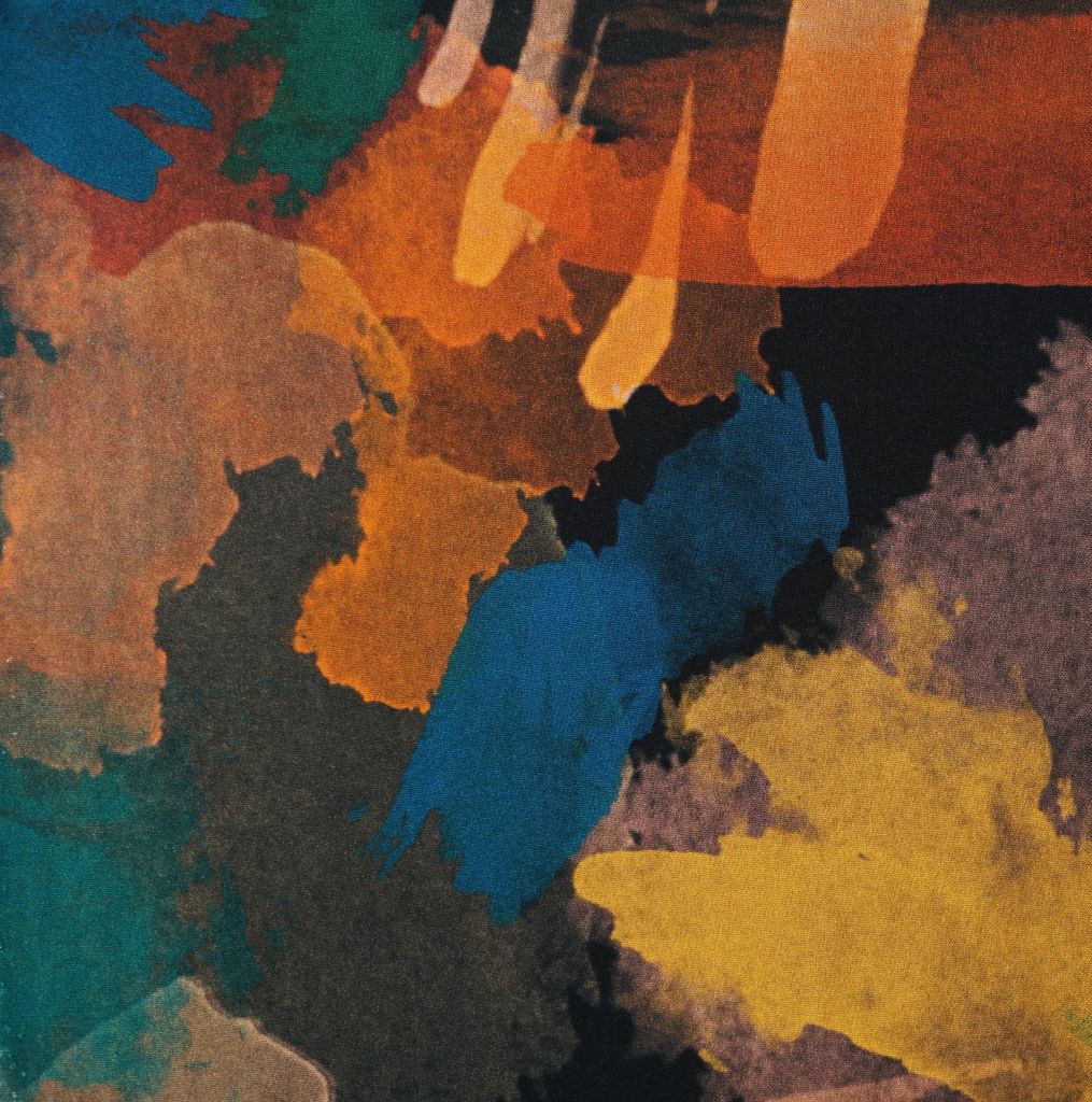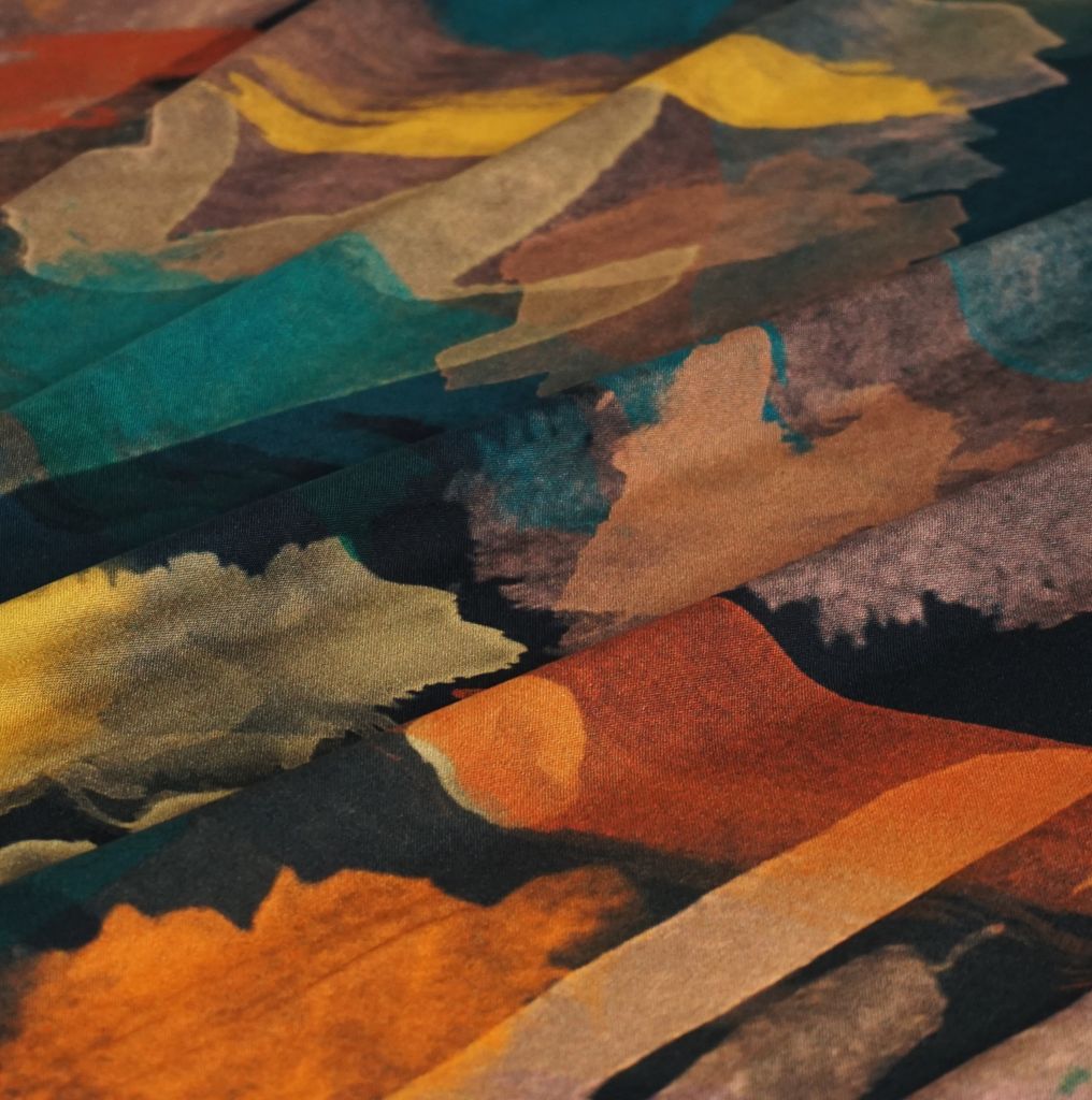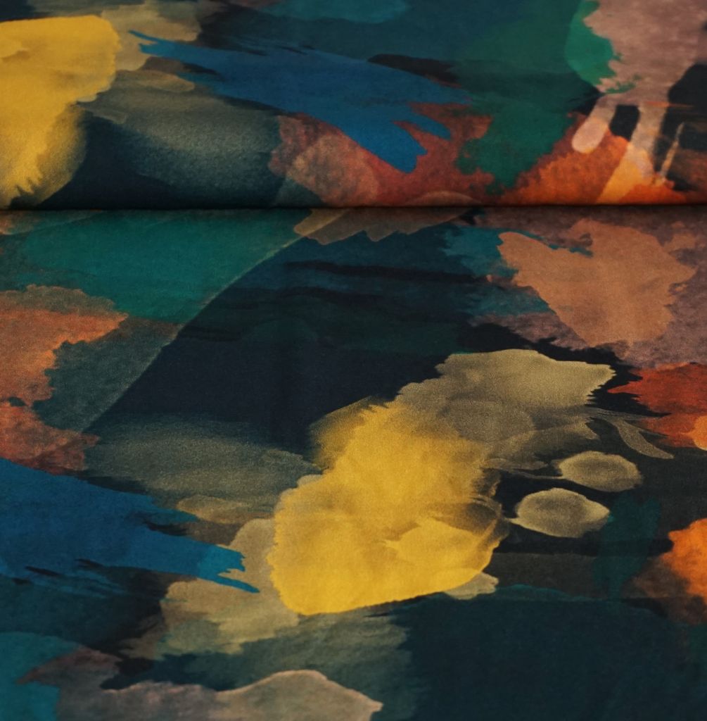 Viskose Druck Kleckse petrol gelb orange – ECOVERO™
