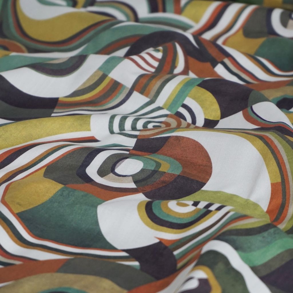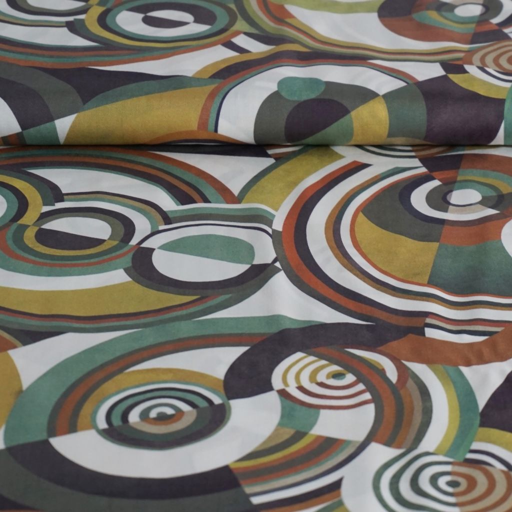 Viskose Druck Kreisformen grün gelb orange