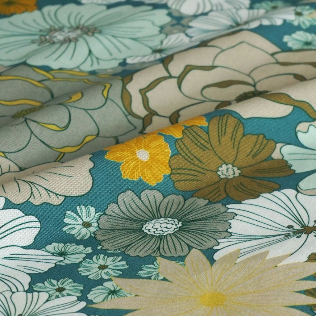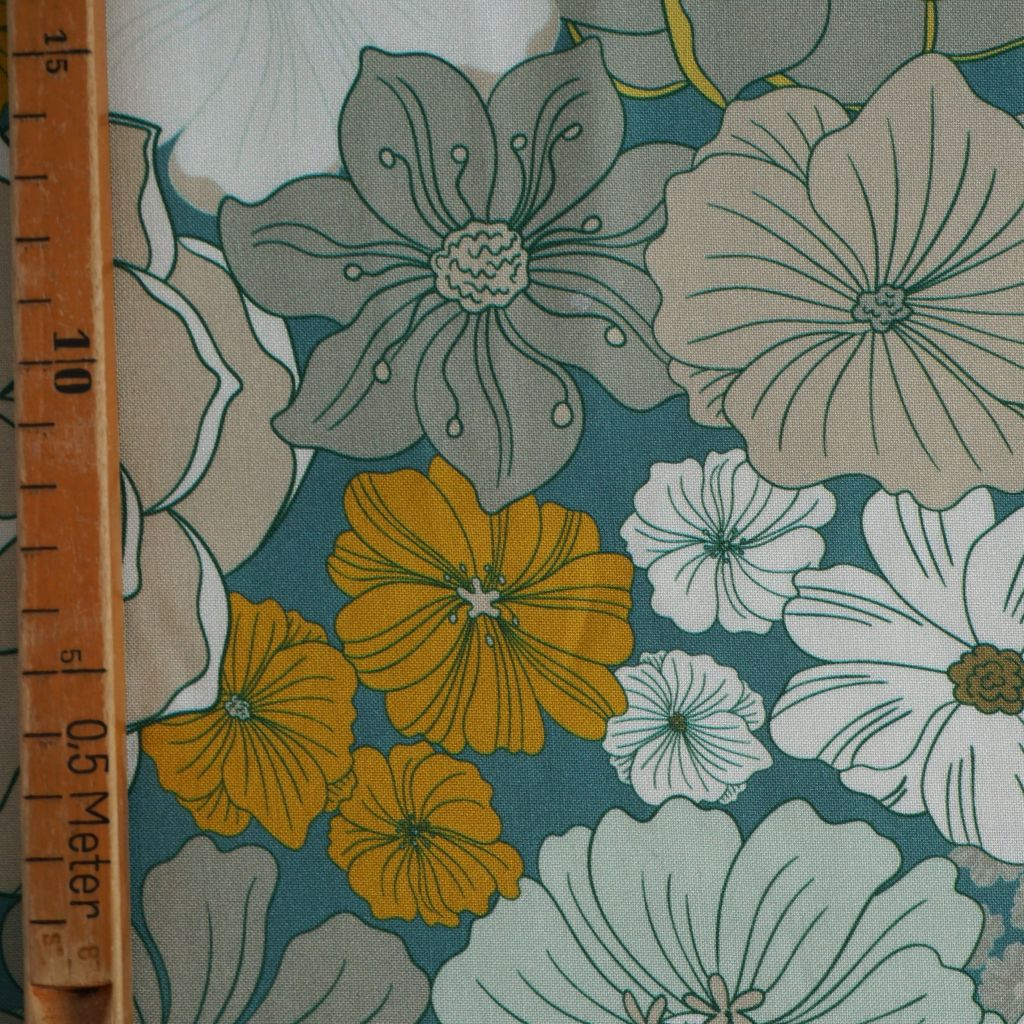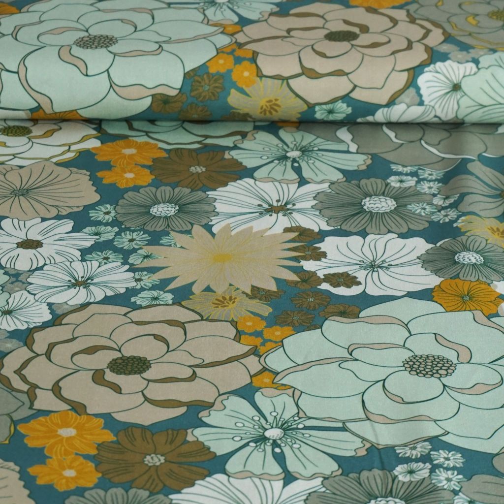 Viskose Druck Retro Blütenmischung petrol mint grün