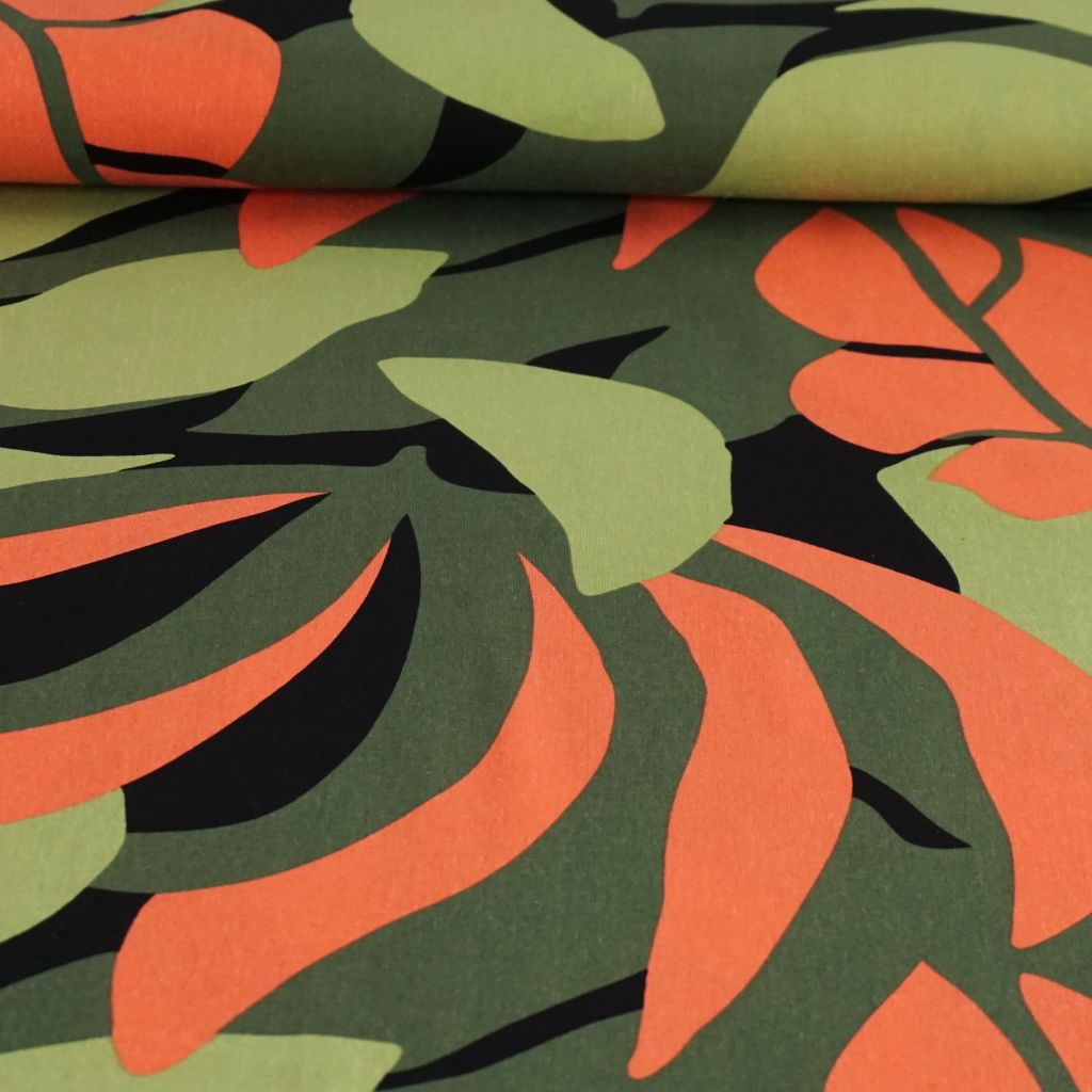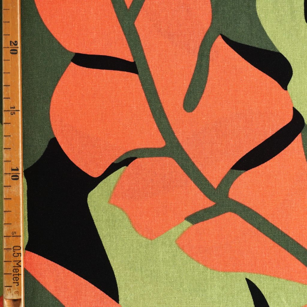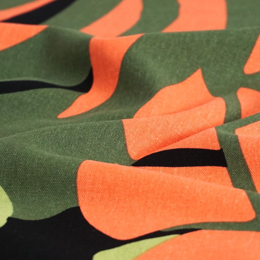 Viskose-Leinenstoff Abstrakt grün lachs schwarz