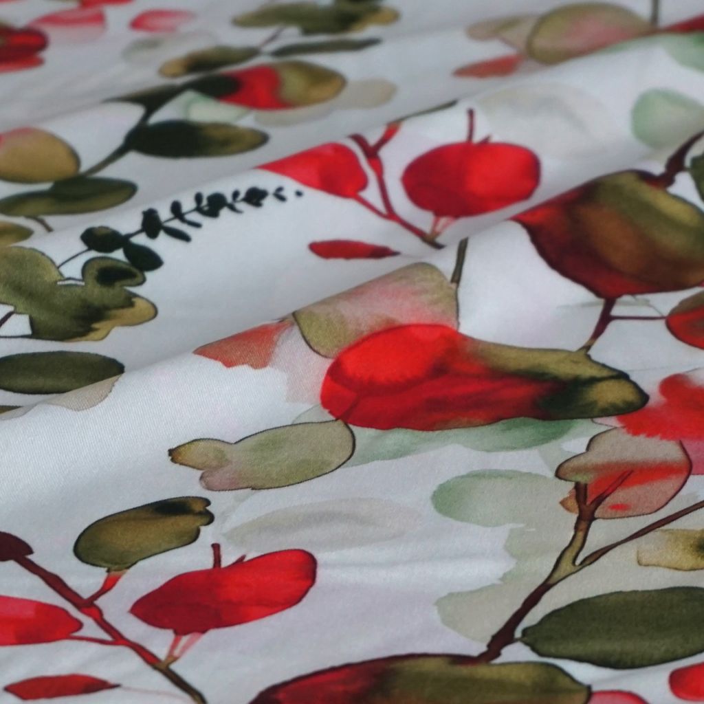 Viskose Twill Blütendolden grün rot - Light and Lush