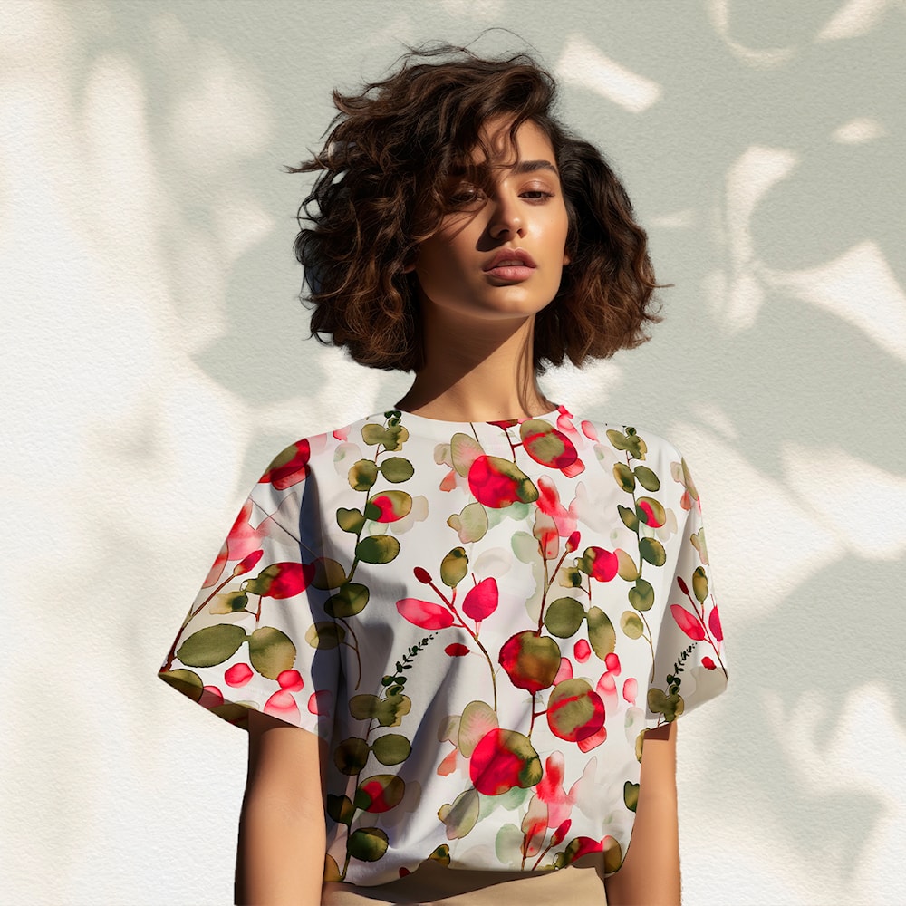 Beeindruckendes Design auf luxeriöser Stoffqualität. Der gewebte Viskose-Twill aus der Light & Lush Kollektion ist diagonal gewebt und hat eine hohe Grammatur von 165g pro qm. Damit fällt der Stoff besonders schön, dicht, elegant und weich. Die matte Oberfläche ist hochwertig mit großzügigen Entwürfen bedruckt.
