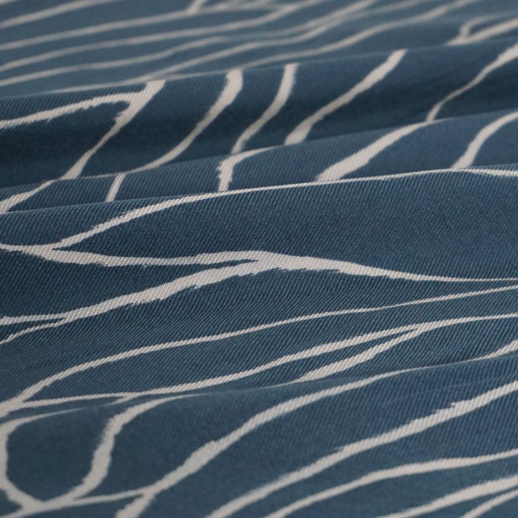 Eigenschaft: leicht, nahezu blickdicht, diagonal gewebt, weicher Griff, matte samtige Oberfläche, bedruckt