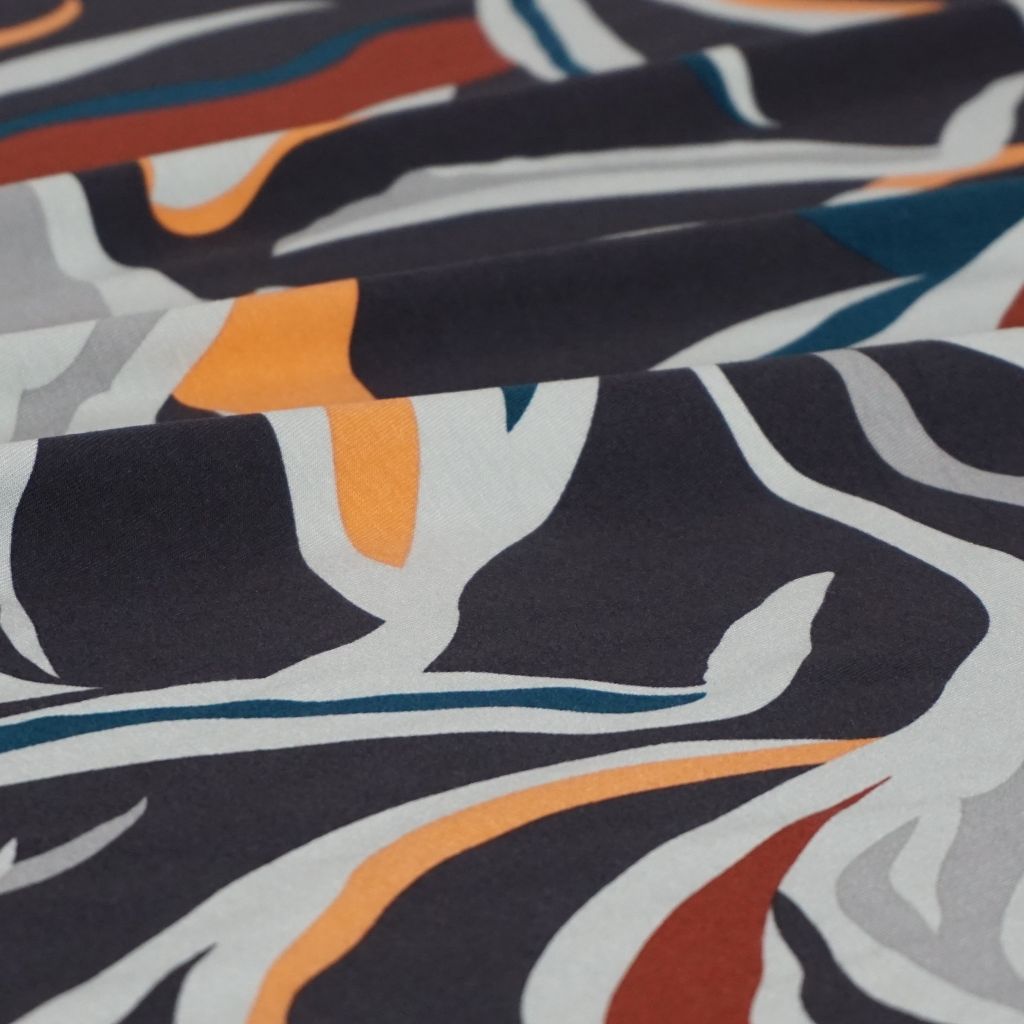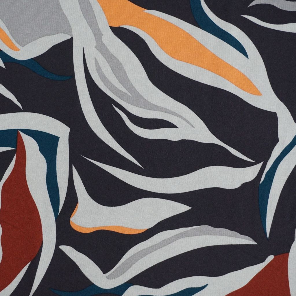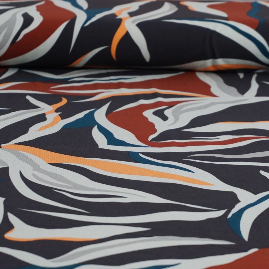 Viskosejersey abstrakt dunkelgrau petrol rost orange