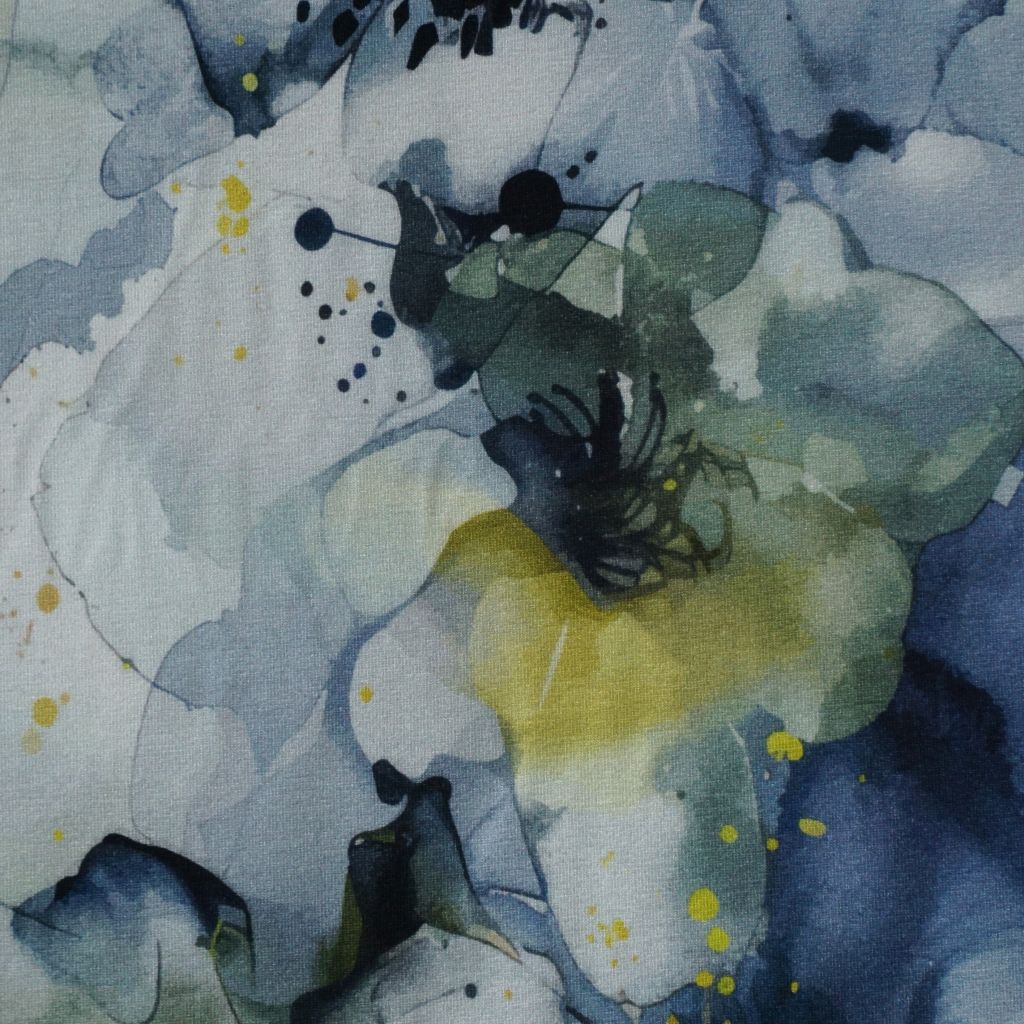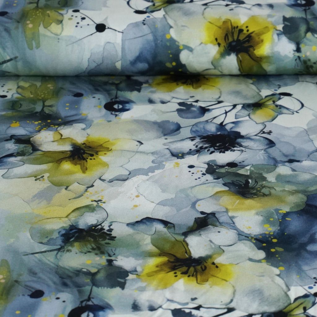 Viskosejersey Blüten grau gelb - Avalana ECOVERO™