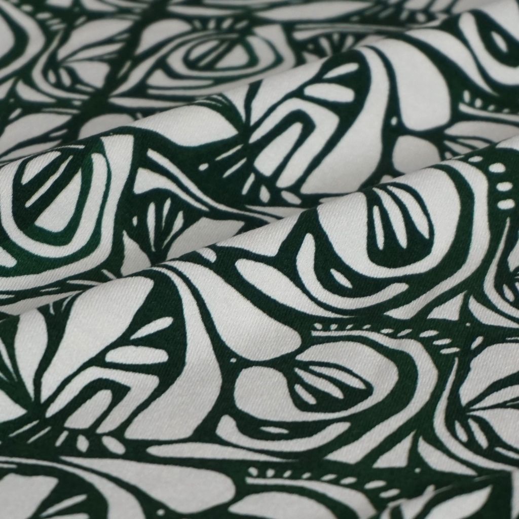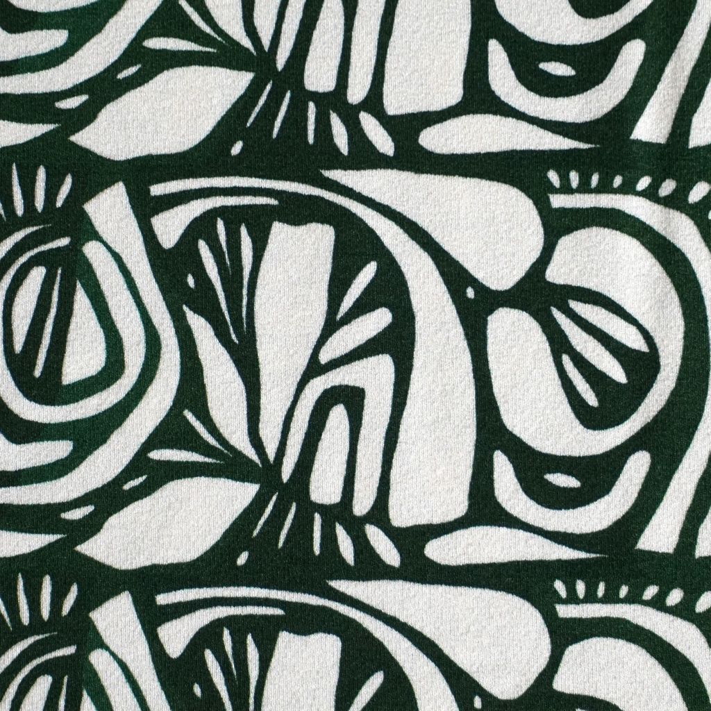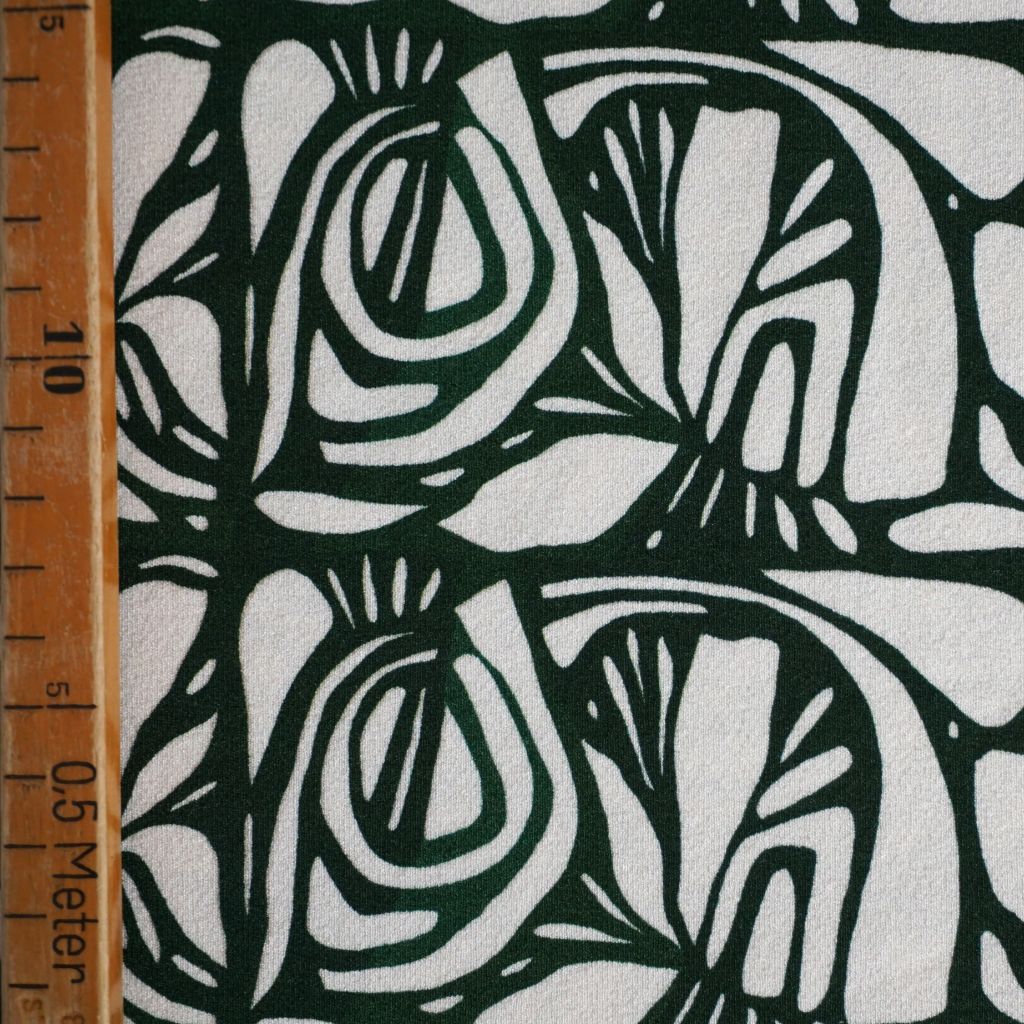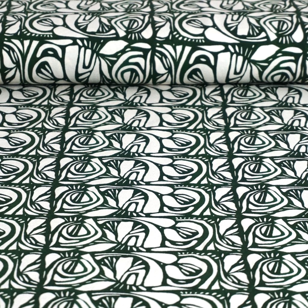 Viskosejersey Crepe dunkelgrünes Muster auf weiß - FVJ