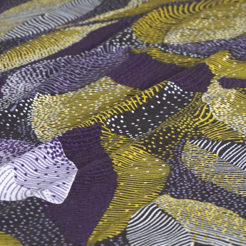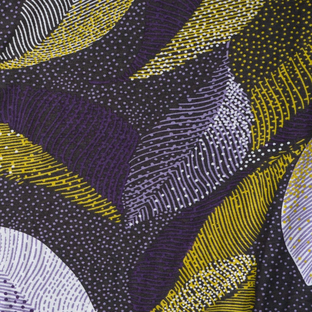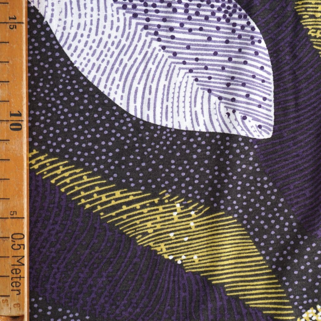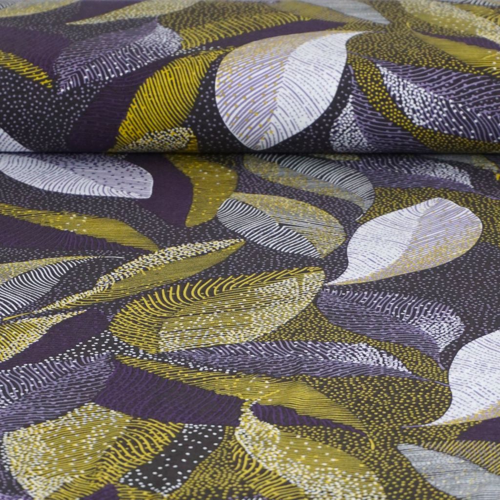 Viskosejersey große Blätter abstrakt aubergine gelbgrün
