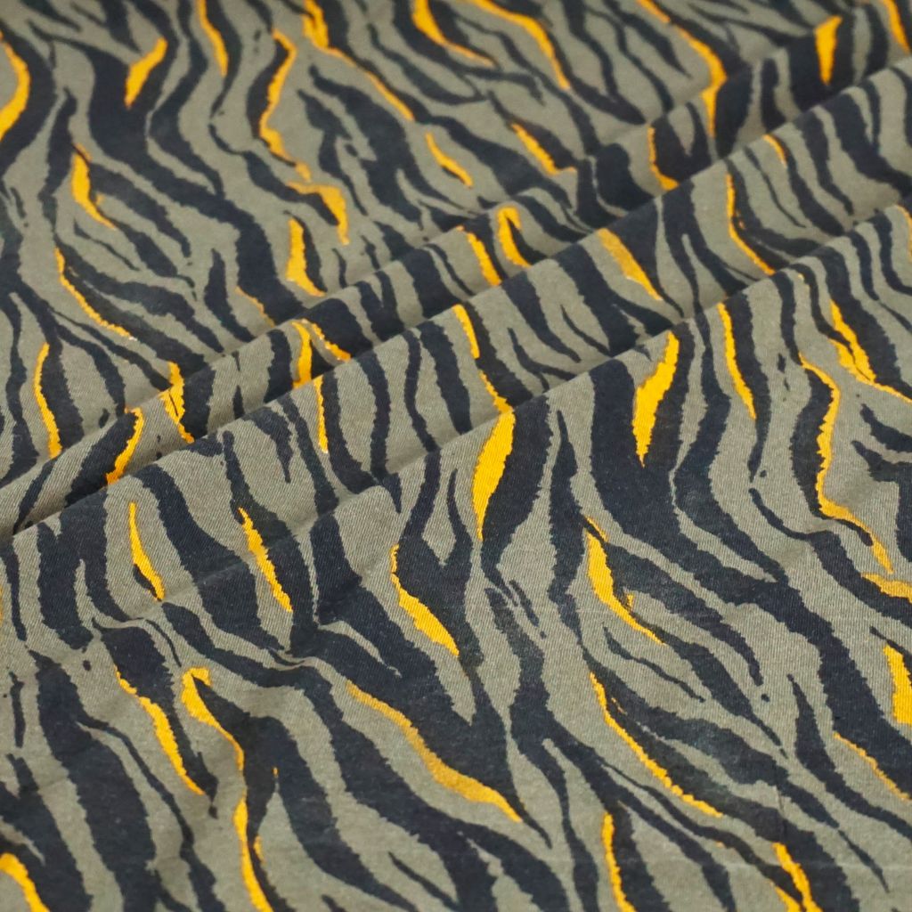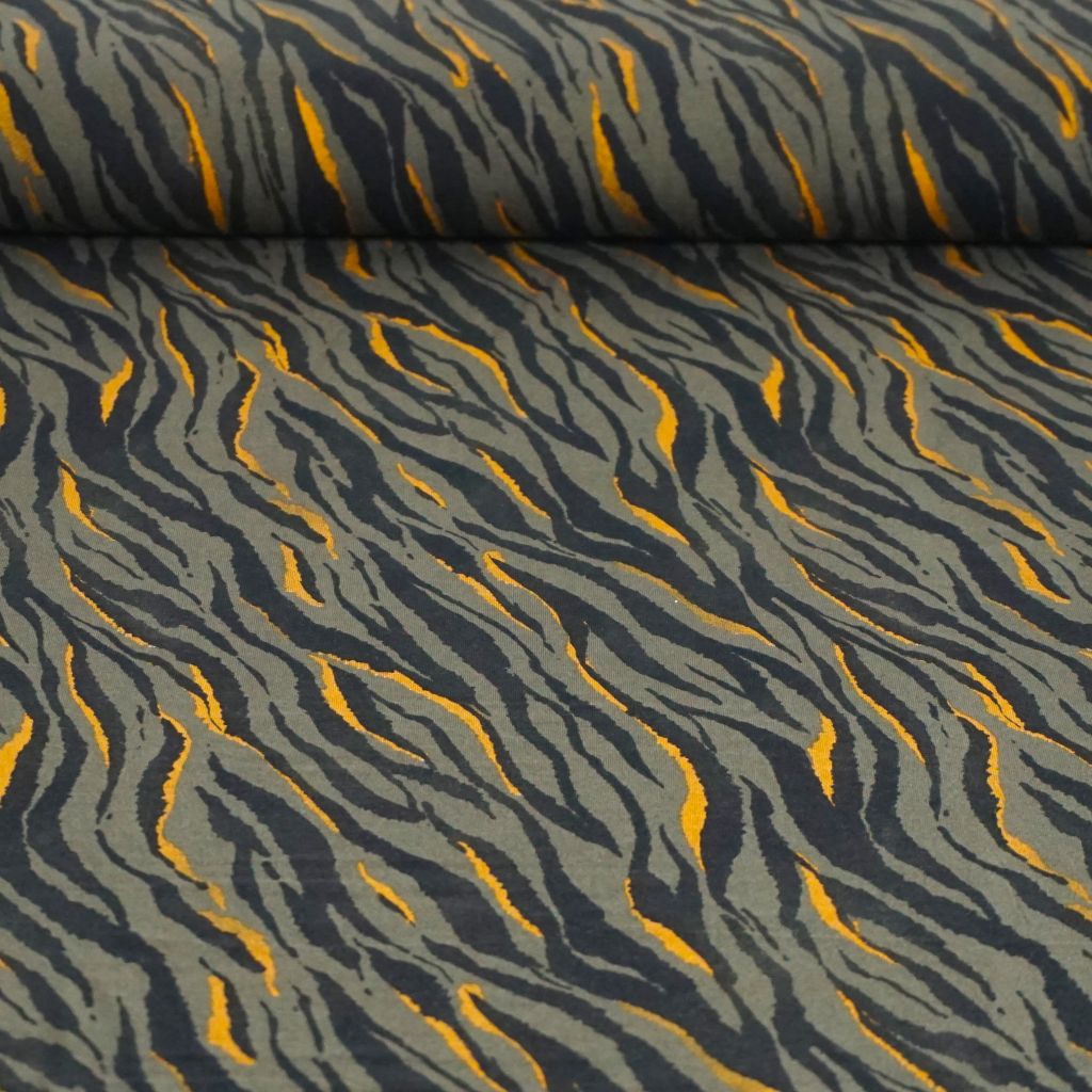 Viskosejersey Tigerstreifen schwarz gelb auf oliv