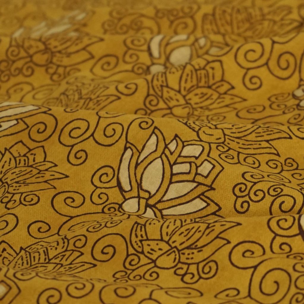 Voile leichte Baumwolle Lotusblüte Ranken senfgelb