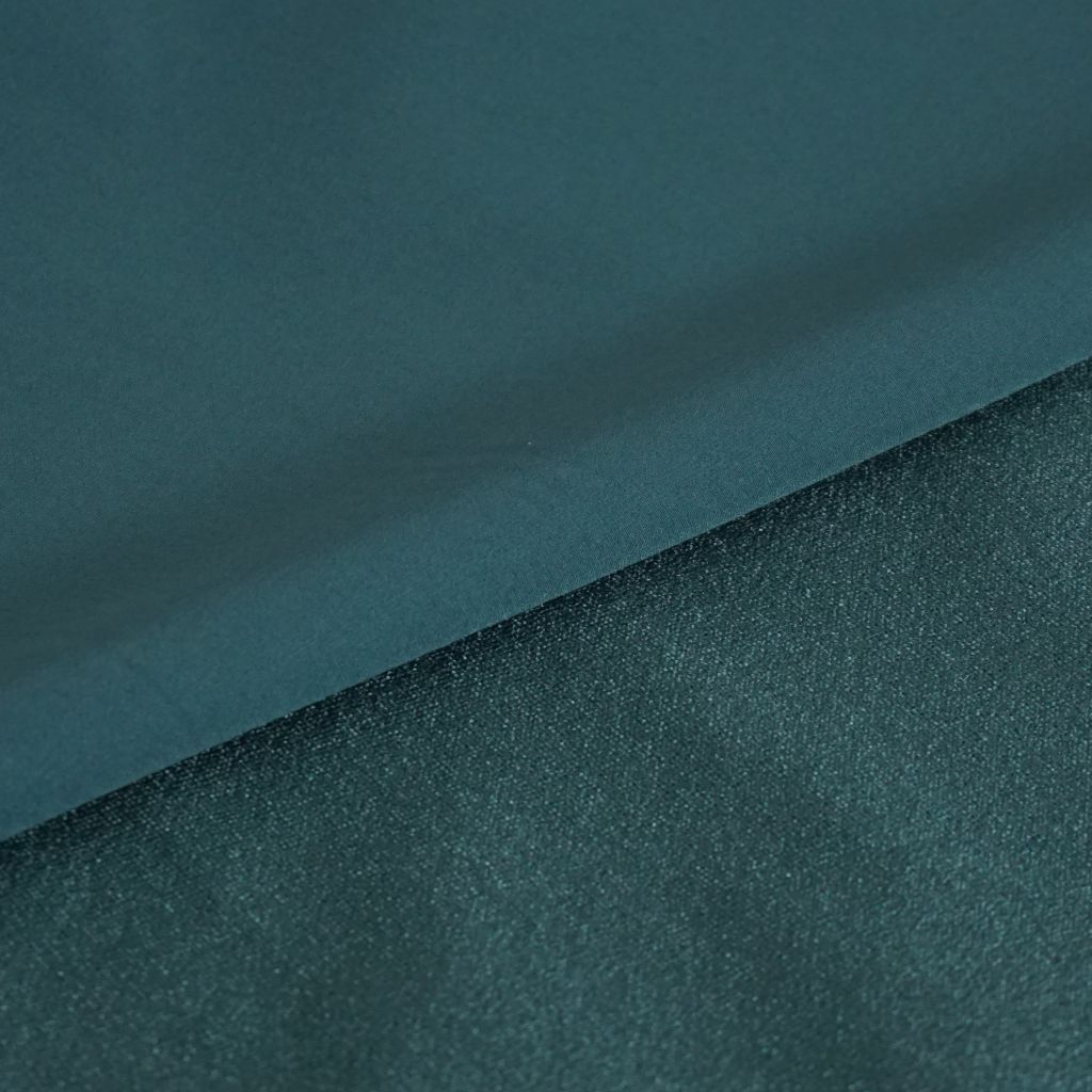 Der leichte Softshell ist ein kompakter Stoff mit etwas Stand. Durch den Elasthananteil passt er sich bequem an deine Bewegung an und fällt für einen Softshell eher locker. Die Oberfläche ist leicht rau und matt, die Innenseite weich, aber nicht abgefüttert. Der praktische pflegeleichte Stoff stoppt Wind und Feuchtigkeit und wird deshalb oft zu Übergangsjacken und Fahrradhosen verarbeitet.